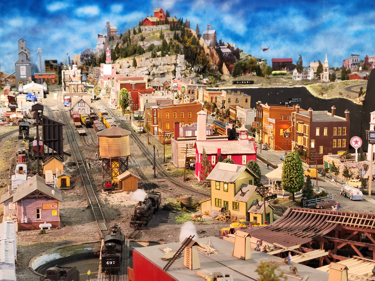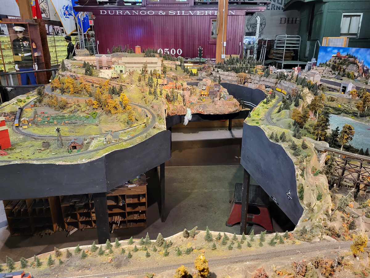 전체가 다 연결이 되어서 실제로 모형기차가 움직이며 돌아 다니는 것이었다! 예전에 LA 그리피스 공원에 있는 월트디즈니 캐롤우드반(Walt Disney's Carolwood Barn) 기차박물관에서도 움직이는 모형기차들을 본 적이 있는데, 이런 디오라마와 움직이는 모형기차 만들면서 놀면 참 재미있겠다는 생각이 아직도 든다...^^