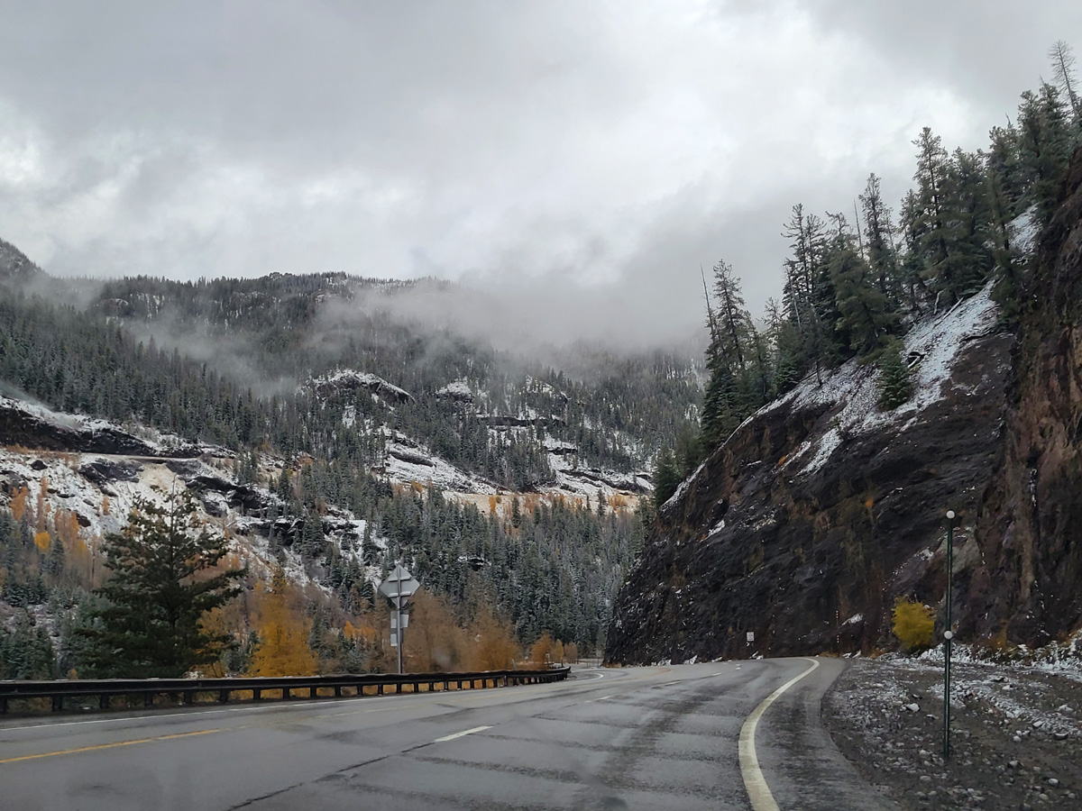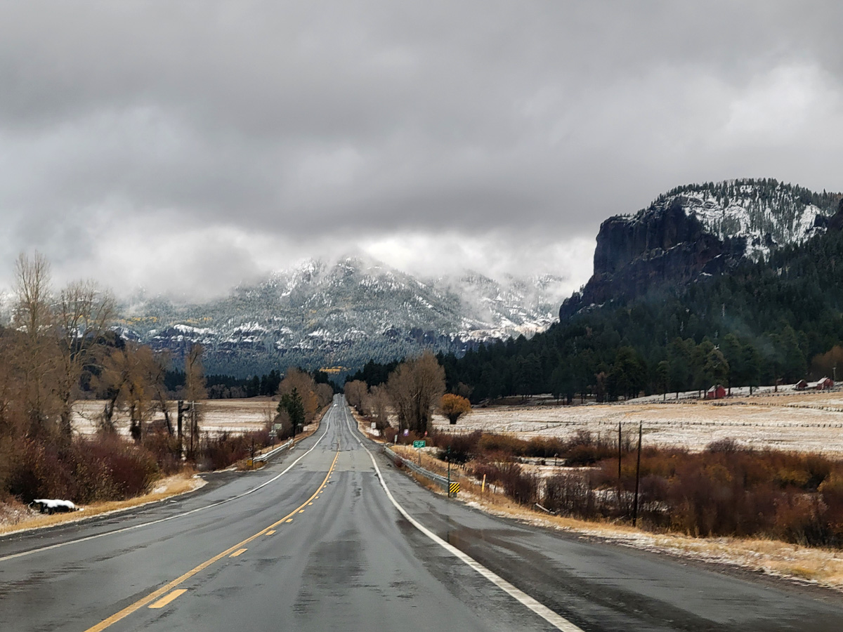 지도를 올린 또 다른 이유는 이 여행기의 사진들이 대부분 달리는 자동차 안에서 찍은 도로의 모습이기 때문이기도 하다. 160번 국도가 Pagosa Springs를 지나자 이렇게 도로 좌우의 들판에도 하얗게 눈이 보이기 시작했는데, 문제는 도로가 점점 높은 산으로 올라간다는 것이었다.