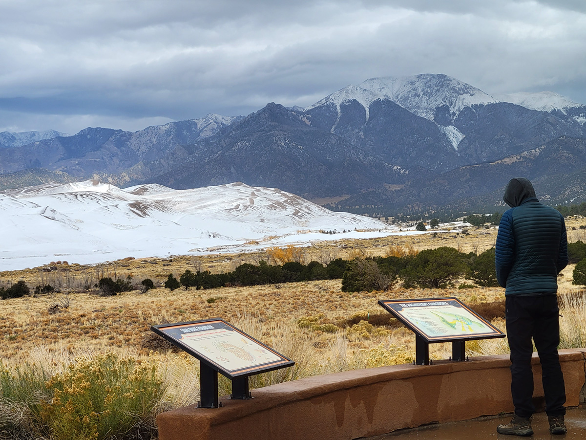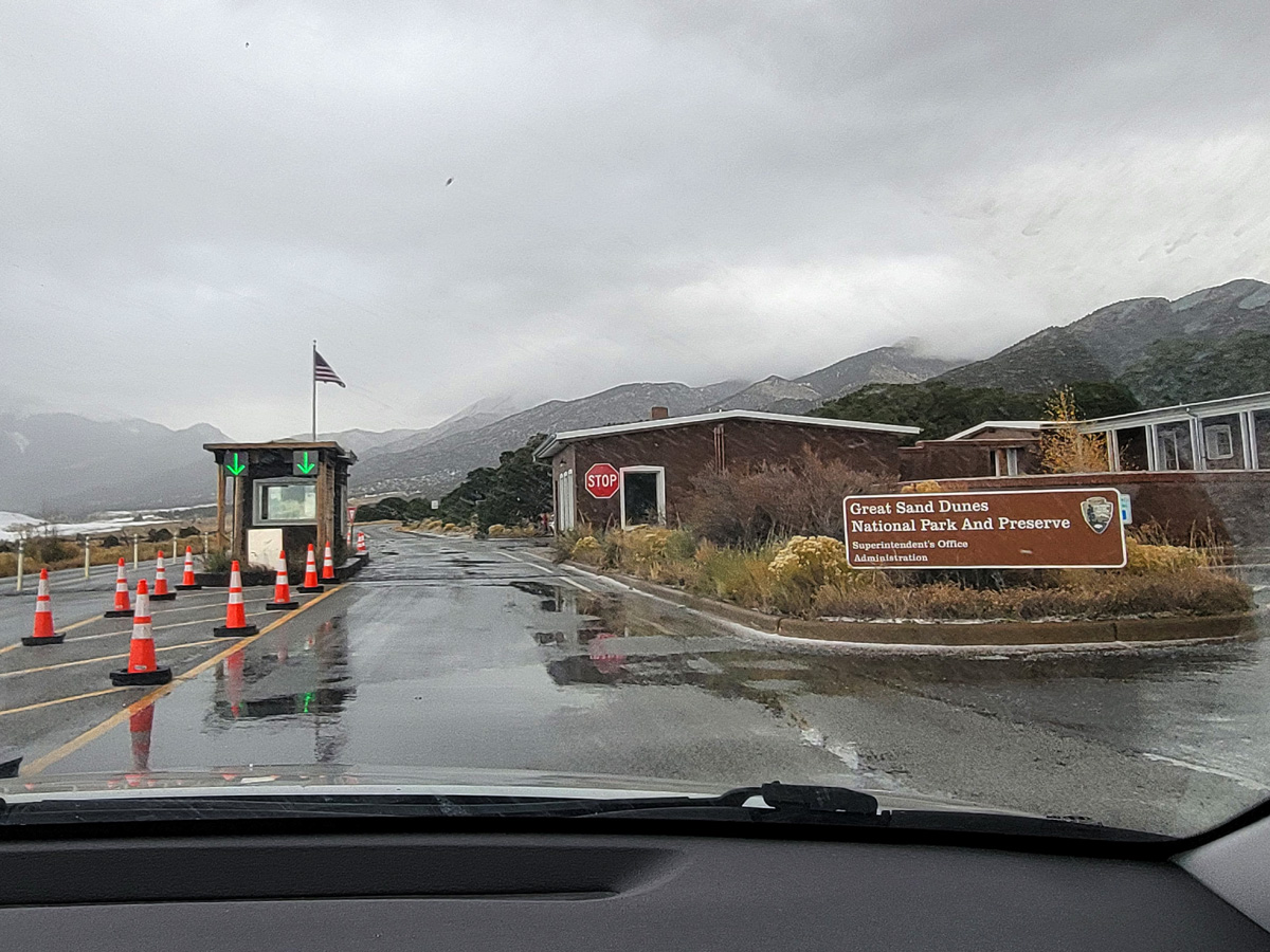 눈길을 헤치고 4시간 가까이 쉬지않고 달려서, 마침내 콜로라도 주에서 하나 남았던 미지의 내셔널파크인 그레이트샌드듄 국립공원(Great Sand Dunes National Park) 입구에 도착했다. 그래서 여기 '그레잇샌듄'은 위기주부가 39번째로 방문하는 미국의 국립공원으로 기록되었다.