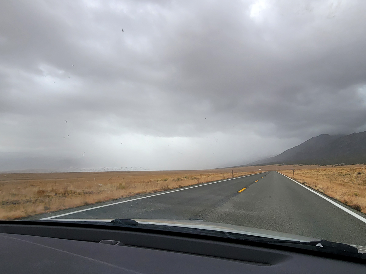 잠시 후 우리는 약간의 경사가 있는 산길로 접어들었는데, 약하게 눈발이 조금 날리기도 했다. 다행인 것은 제설차가 도로에 염화칼슘을 뿌리고 지나간 흔적이 있었다는 것... 그래도 두 번의 대륙횡단에서 1차때 아칸소 주의 꼬불한 산길을 밤에 달린 것과 이 때가 가장 긴장해서 운전을 했던 기억이다.