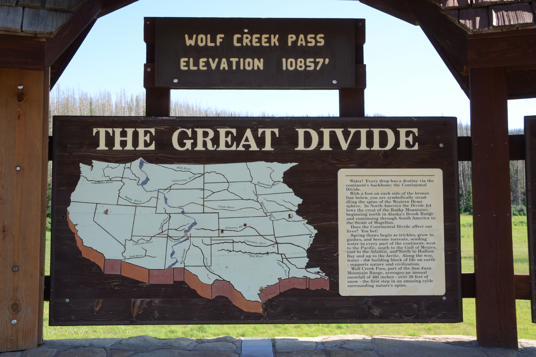 당시 제설차가 서있고 눈이 제법 쌓였던 해발 10,857피트(3,309 m)의 울프크릭패스(Wolf Creek Pass)의 안내판 사진을 인터넷에서 가져왔다. 대륙횡단에서 이런 대륙경계(Continental Divide)를 넘어가는 중요한 곳은 내려서 구경을 해야 하지만... 당시에는 차에서 내릴 생각은 고사하고, 조수석의 아내도 창밖으로 사진 한 장 찍을 여유조차 없이, 온 신경을 곤두세우고 천천히 그냥 대륙의 경계를 통과했었다.