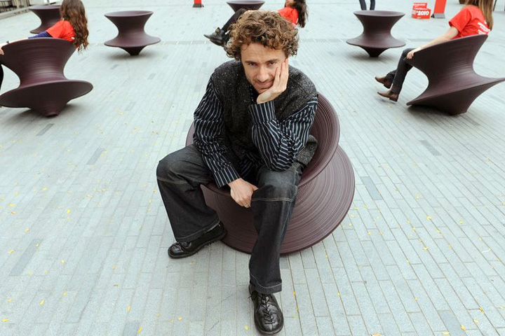 토마스 헤더윅(Thomas Heatherwick)이 쇼핑몰이나 공원에 가면 요즘 자주 보이는, 그가 발명한 '팽이의자' 스펀체어(spun chair)에 앉아있다. 그는 새로운 런던의 이층버스와 2012년 런던올림픽 성화대를 설계한 디자이너 겸 건축가로, 현재 이 분야에서 전세계적으로 가장 핫한 사람이다. 여행기에 이렇게 건축가의 사진까지 찾아서 보여드리는 이유는 아래의 글을 계속 읽어보시면 차차 알게된다~