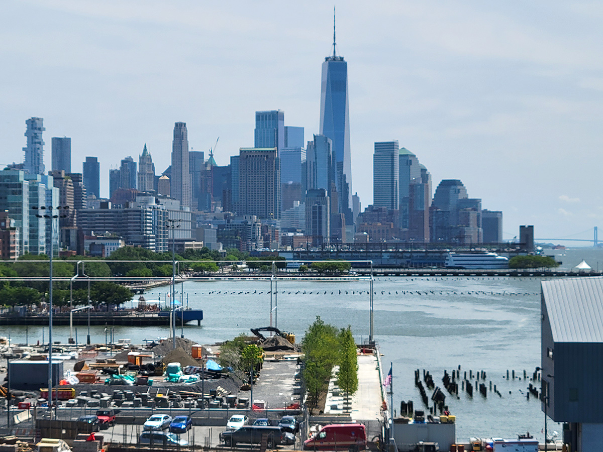 남쪽으로 뉴욕 로워맨하탄(Lower Manhattan)과 강 건너 뉴저지 저지시티(Jersey City)의 고층건물들이 모두 보였다.