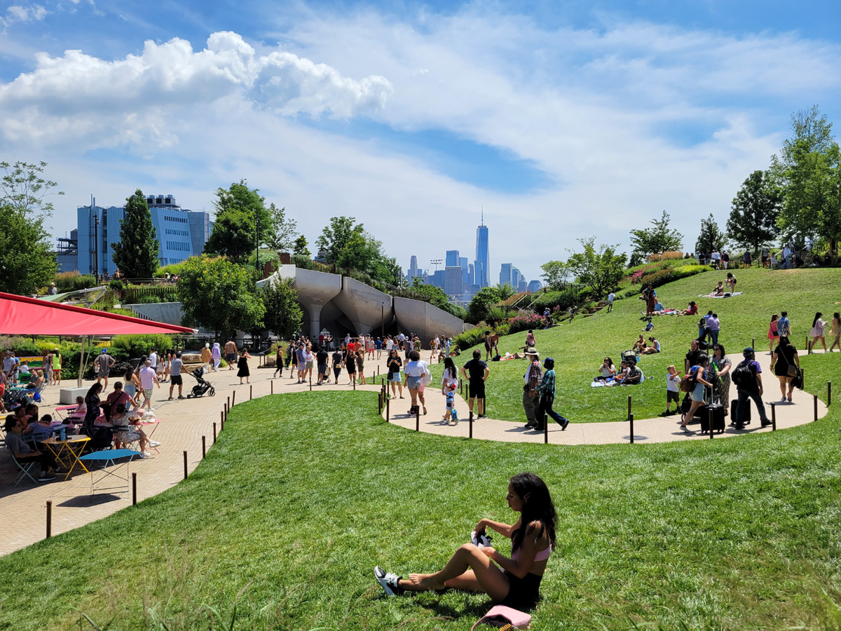 다리를 건너 인공섬 위로 올라가보면 그냥 이렇게 자연스럽게 잔디가 깔려있는 공원인데, 맨하탄 미드타운의 평평한 빌딩숲에 사는 사람들을 위한 작은 언덕이 만들어져 있다.