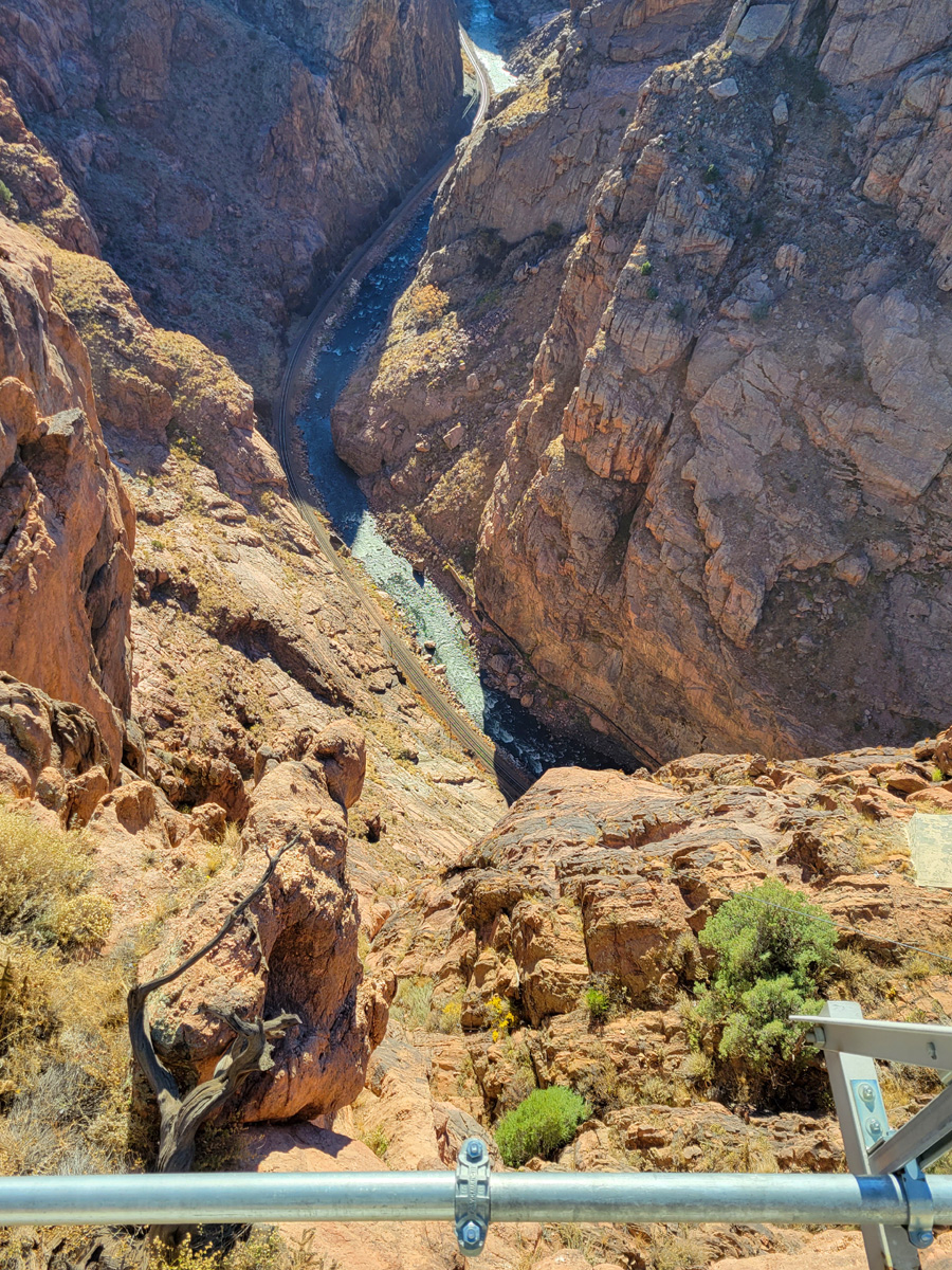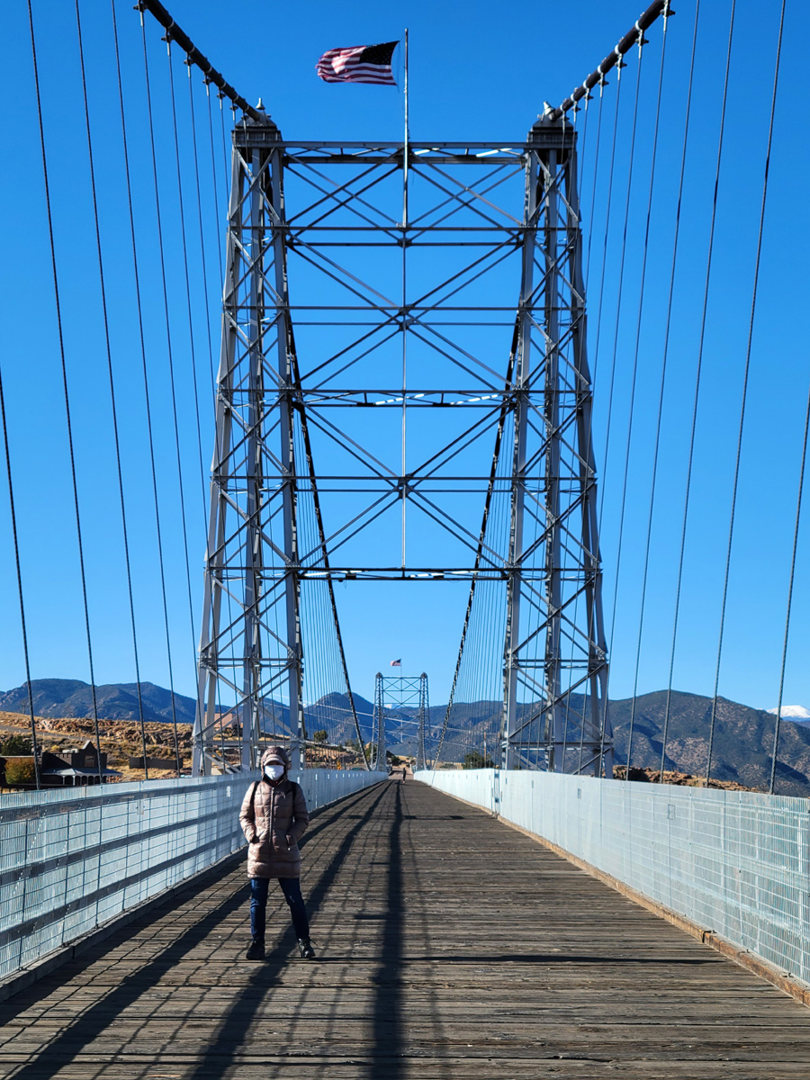 저 아래 흘러가는 아칸소 강(Arkansas River)에서 여기 다리까지의 높이는 955피트(291 m)로, 무려 100년 가까이 '미국에서 가장 높은 다리'의 칭호를 유지하고 있다. 참고로 2등은 아리조나 후버댐 앞에 2010년에 만들어진 Mike O'Callaghan–Pat Tillman Memorial Bridge로 높이가 900피트(274 m)인데, 여기를 클릭해서 10년전에 방문했던 여행기를 보실 수 있다.
