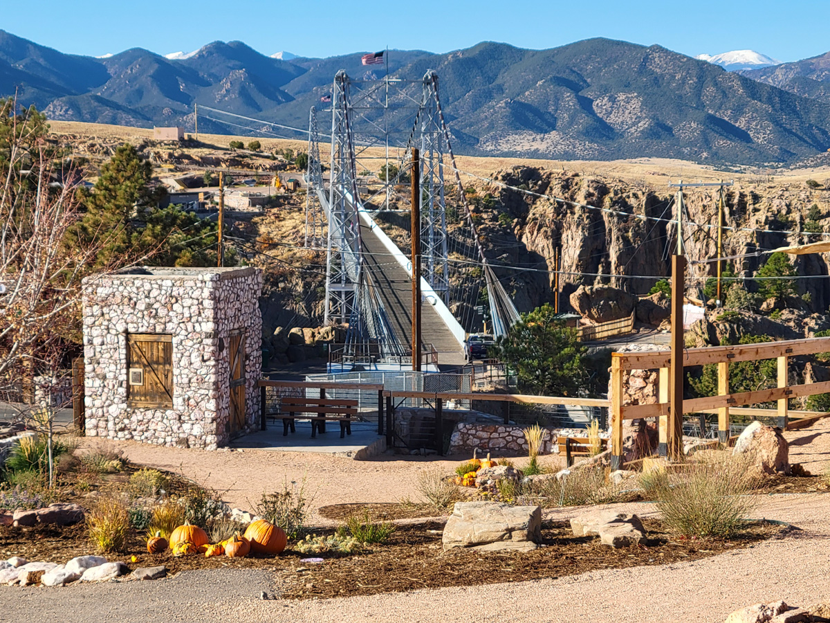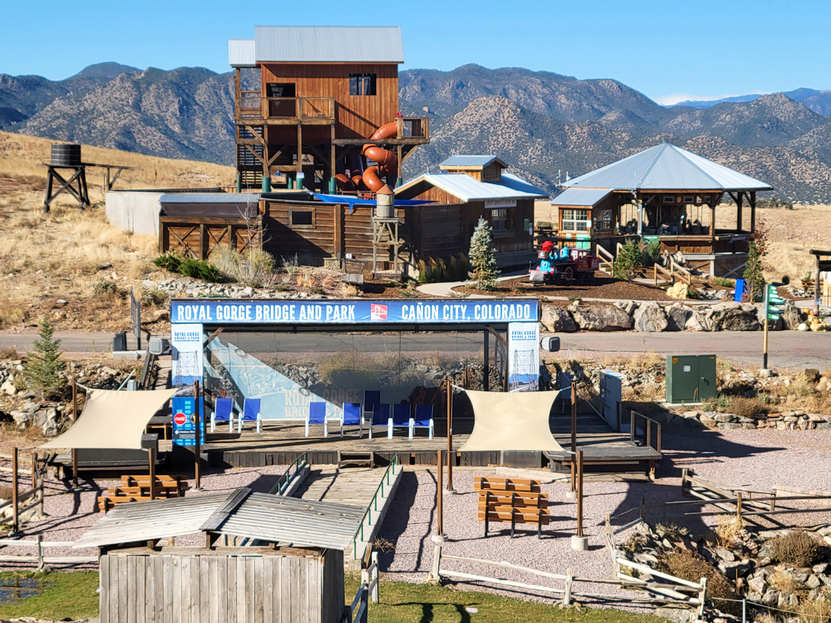 로얄고지브리지(Royal Gorge Bridge)는 처음부터 관광을 목적으로 1929년에 당시 35만불(현재로는 약 4백만불)을 들여서 6개월만에 건설된 철제 현수교이다. 즉, 교통을 위한 도로로 만들어진 것이 아니기 때문에 지금도 상판은 사진처럼 나무판자로 되어있는데, 가끔 주먹이 들어갈만큼 벌어진 곳도 있었다. 2차대전 후에 이 다리는 텍사스 정유업계의 거부인 Clint Murchison에게 팔렸는데, 그는 자기가 산 다리를 1969년에 죽을 때까지 한 번도 와보지 않았다고 하며, 그의 사후에 후손이 캐년시티와 함께 본격적으로 놀이공원으로 개발을 해서 현재까지 이어지고 있다고 한다.