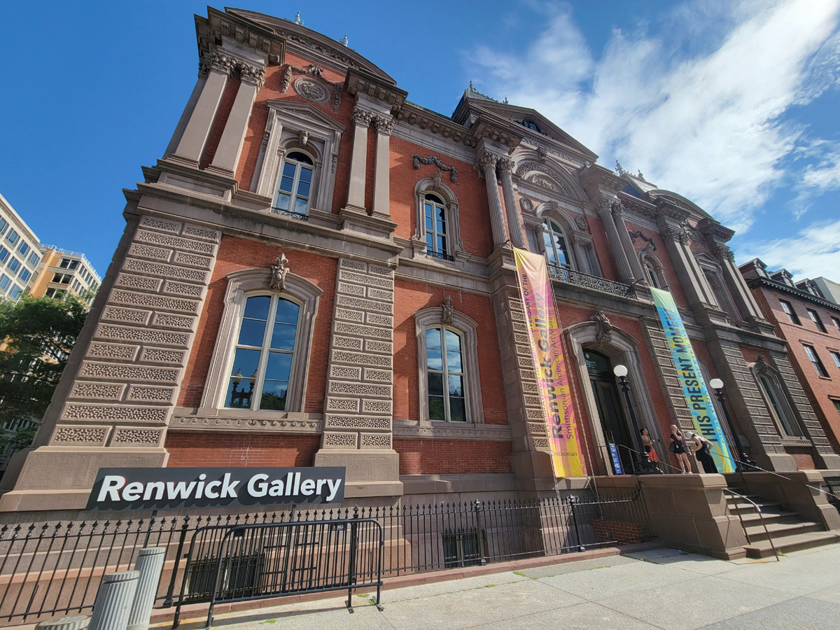 백악관에서 가까운 렌윅갤러리(Renwick Gallery) 건물은 1874년에 워싱턴DC 최초의 미술품 전시관인 코코란 미술관(Corcoran Gallery of Art)으로 건설되었는데, 스미소니언 캐슬과 뉴욕 세인트패트릭 대성당 등을 설계한 건축가 James Renwick Jr.의 작품이다. 개관 후 20여년이 지나서 코코란은 더 큰 건물을 지어서 이전하고, 1899년부터는 연방정부의 사무실로 1960년대까지 사용되다가 오래되고 협소해 철거될 계획이었다. 그러나 당시 영부인인 재클린 케네디의 노력으로 국가문화재로 지정된 후에 1972년에 스미소니언 재단 산하의 미술관으로 다시 문을 열게 되었다.
