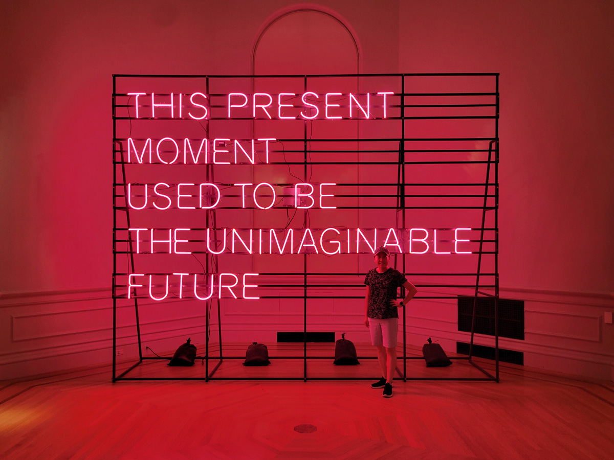 팔각형의 홀에 설치된 네온사인 작품인데 'UNIMAGINABLE' 단어만 불이 꺼졌다 켜졌다 했다. "지금 이 순간이 (과거에는) 상상할 수 없는 미래였었다."