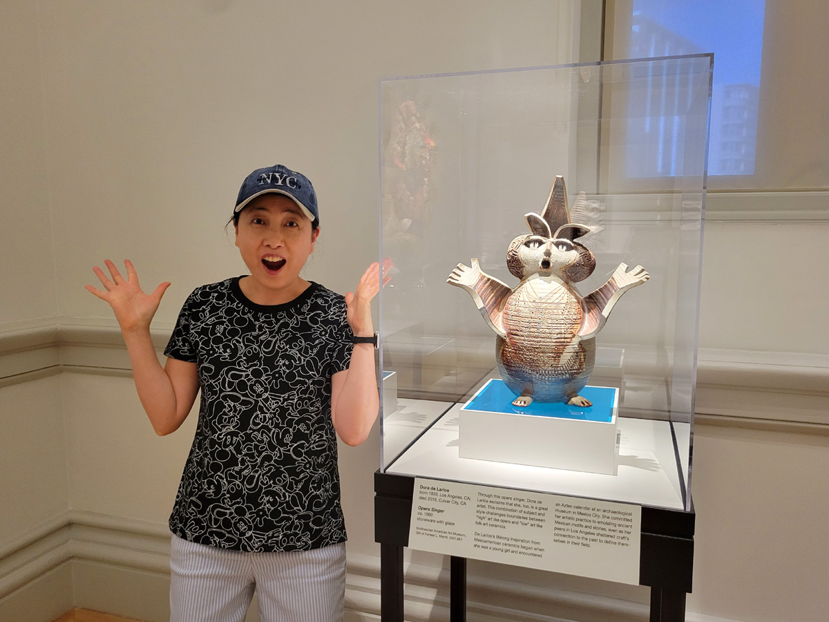 한국계 예술가의 작품도 있었는데, 찌그러진 백자에 그려진 그림을 자세히 보면 산수화 가운데에 공룡이 노닐고 있다.^^