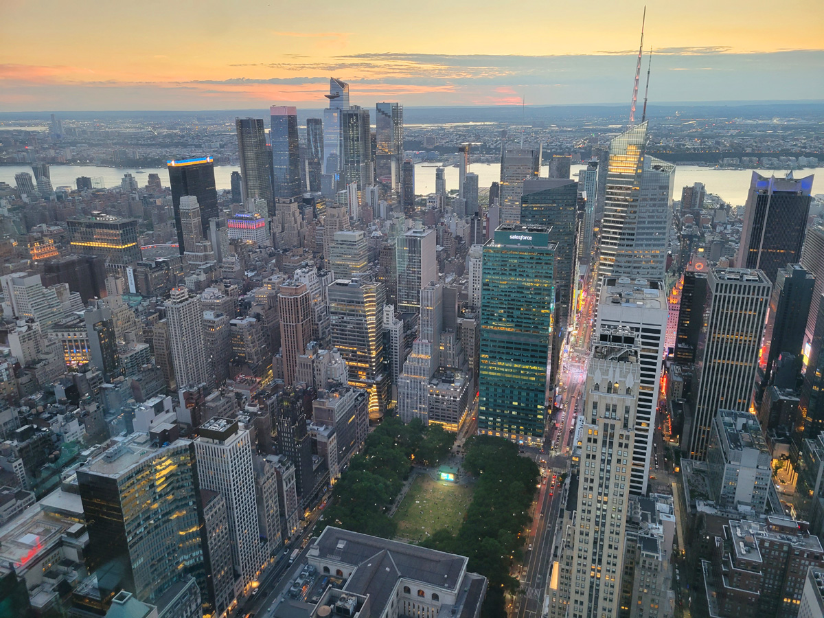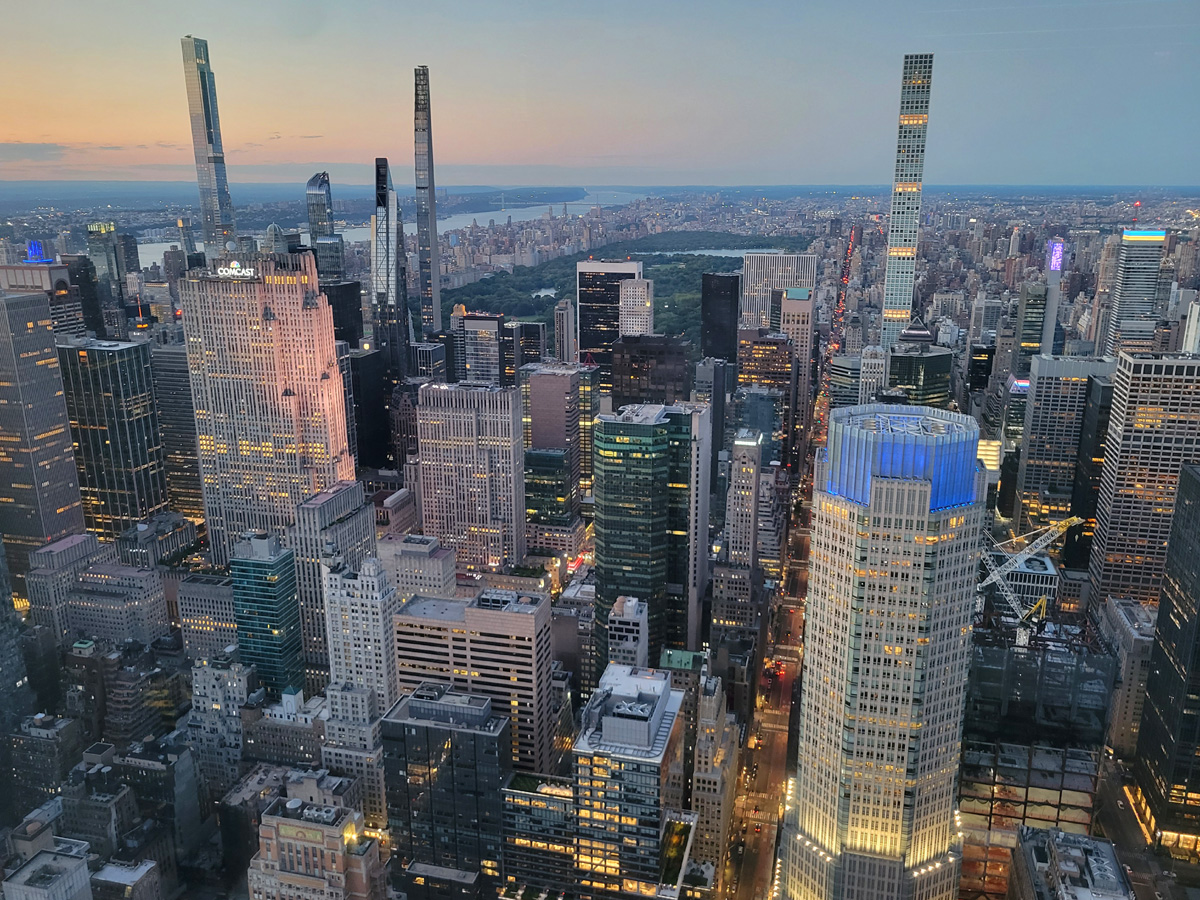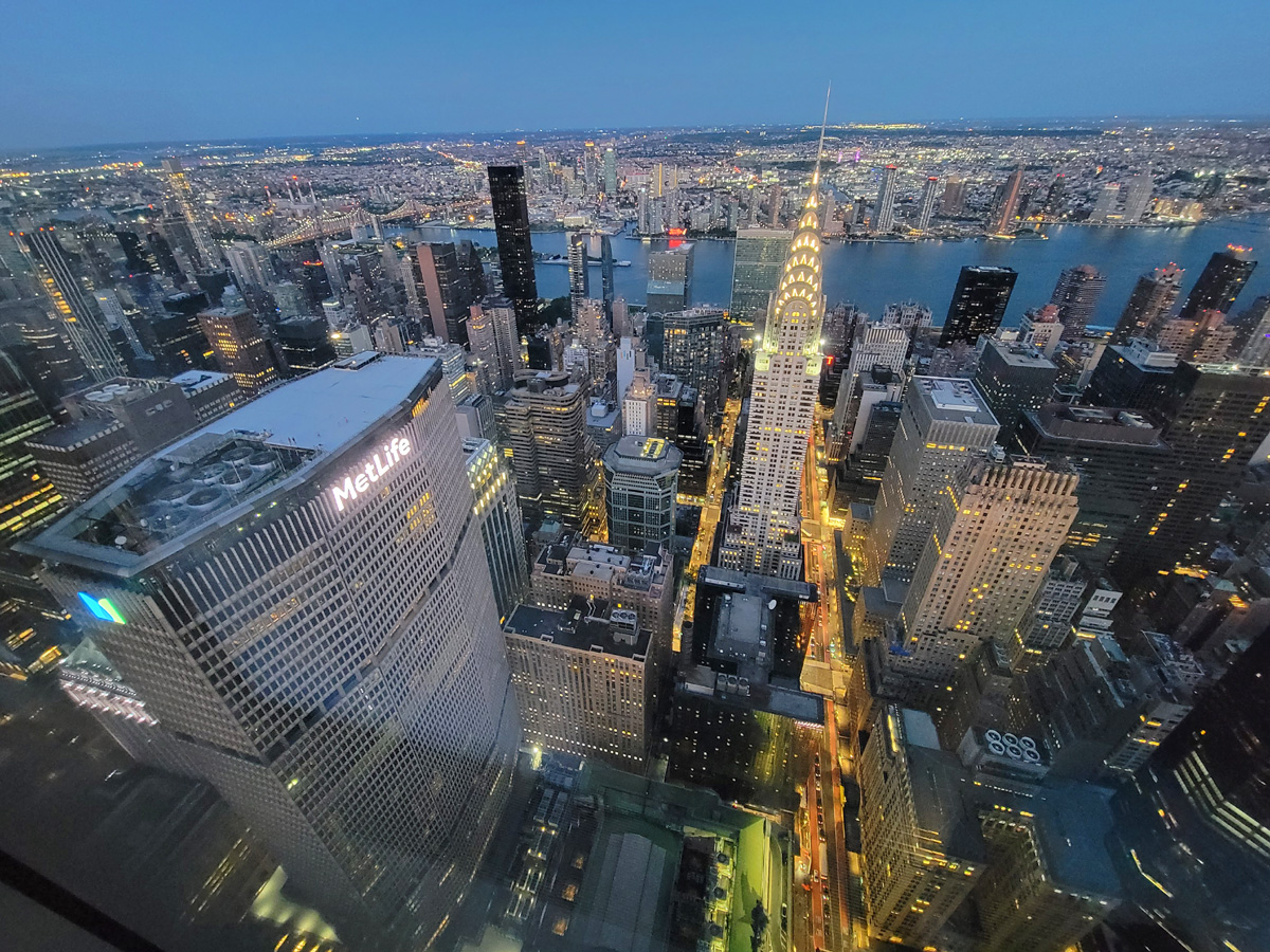 42번가를 따라 동쪽으로 걸어서 고풍스런 외관의 그랜드센트럴 역까지 왔다. 역의 뒤로는 1963년에 팬암(Pan Am) 항공사 본사로 오픈해서, 지금은 보험사 메트라이프(MetLife) 소유인 59층의 빌딩이 보인다. 그리고 왼편의 유리건물이 2020년 9월에 완공된 93층의 원밴더빌트 빌딩(One Vanderbilt Building)으로 꼭대기 쪽에 다르게 보이는 외벽의 3개층이 전망대가 있는 곳이다. 이 건물의 전체 높이는 1,401피트(427 m)로 현재 뉴욕시에서 4번째로 높은 빌딩이다.