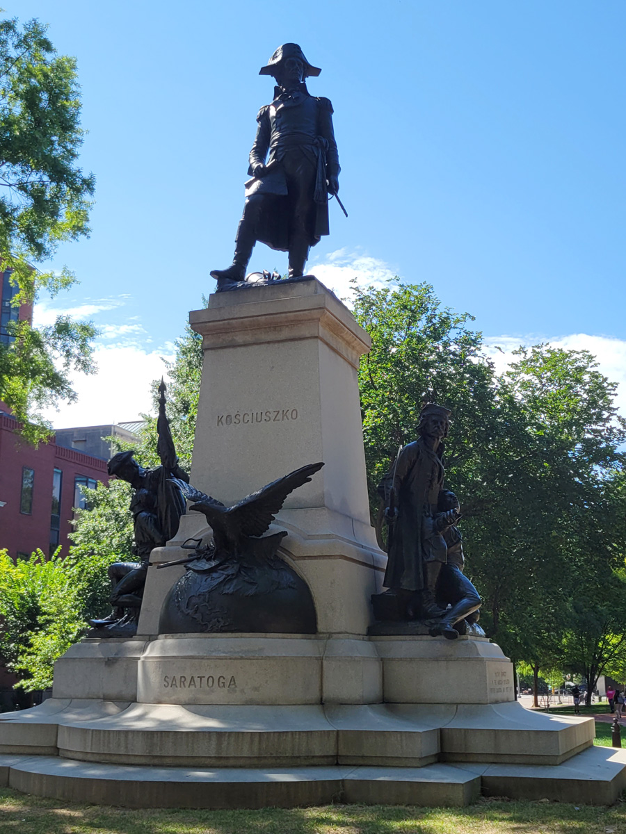공원의 북동쪽 귀퉁이에는 미국독립에 기여한 외국인으로 폴란드의 타데우시 코시치우슈코(Tadeusz Kościuszko) 동상이 세워져 있다. 그는 공병장교로 독립전쟁에 지원해서 웨스트포인트 방어와 사라토가 전투 등에서 공을 세웠다고 한다. 그리고 북서쪽에는 지난 봄 밸리포지(Valley Forge) 국립역사공원 여행기에서 잠깐 언급했던 프러시아 출신의 슈토이벤 남작(Baron Steuben)의 동상이 있는데 사진을 찍지 못했다.