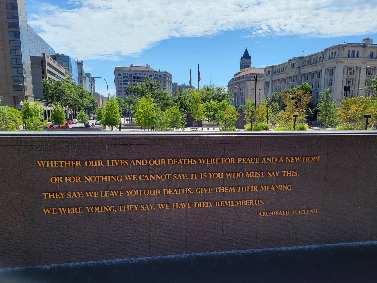 기다란 석조물의 뒷면에는 희생자들을 기리는 미국 시인 Archibald MacLeish의 헌정시가 씌여있고,