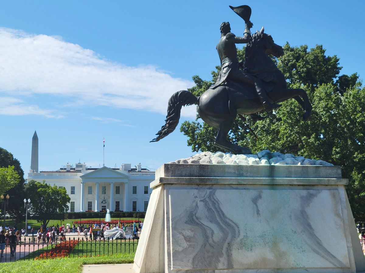 라파예트파크(Lafayette Park)의 중앙에는 미국의 제7대 대통령이자 20달러 지폐의 모델인 앤드류 잭슨(Andrew Jackson)의 기마상이 자리잡고 있다. 소위 미국 최초의 '흙수저' 출신 대통령으로 잭슨민주주의(Jacksonian Democracy)를 정립한 업적이 있지만, 100명 이상의 흑인노예를 소유하고 인디언 강제이주를 잔인하게 주도한 문제로 평가가 엇갈리는 편이다.