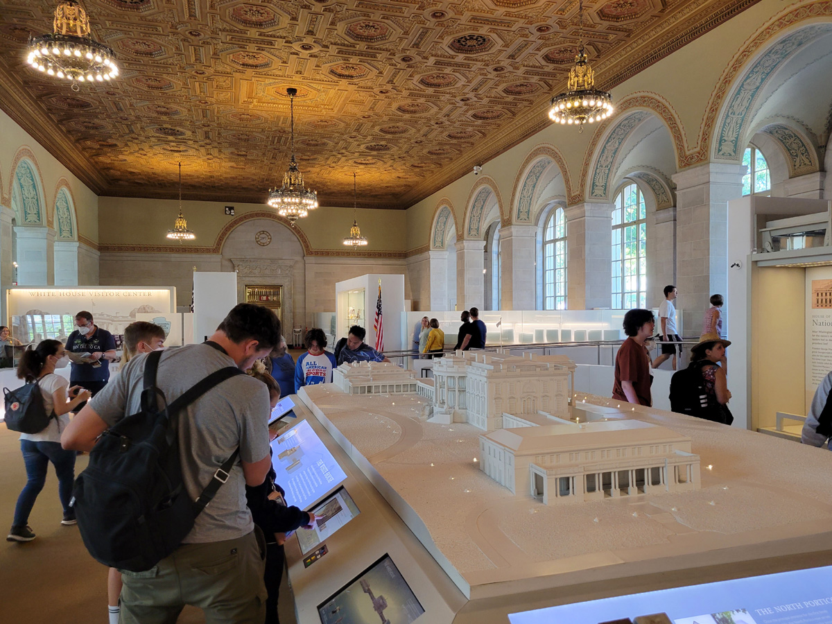 보안검색을 거쳐서 내부로 들어오면 가운데 백악관의 모형을 중심으로 많은 흥미로운 전시가 있으며, 특히 출구쪽에 있는 가게에서는 백악관 공식 기념품도 구입할 수가 있으므로 시간이 되시면 꼭 방문하는 것을 권해드린다. (화~토요일, 7:30 AM–4:00 PM, 연방 공휴일 제외) 참고로 백악관 경내로 들어가는 내부투어는 현재 미국인은 거주지 국회의원 사무실을 통해서 신청 후에 신원조사를 거쳐서 가능하며, 외국인은 자국 대사관을 통해서 미리 신청을 해야한다고 안내되어 있다.