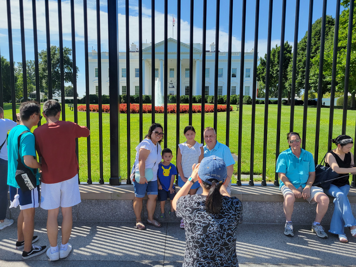 그리고는 난간 사이로 핸드폰을 갖다 대고는 백악관의 독사진을 한 장 더 찍는다. 이 때 손이나 카메라가 담장 안쪽으로 넘어가지 않도록 주의해야 한다. 특히 커다란 DSLR 카메라같은 물체가 담장 안으로 많이 들어가면, 주변에 관광객들 사이에 섞여있는 사복 비밀경찰의 제지를 받는다는 소문이 있다.