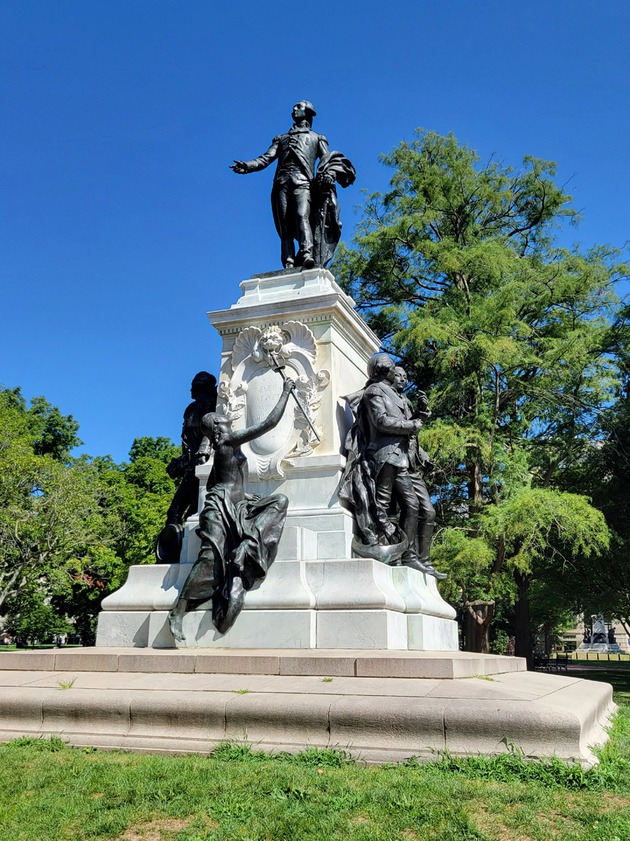 마지막으로 남동쪽에는 넷 중에서 가장 유명하고, 그래서 이 공원의 이름이기도 한 프랑스의 라파예트 후작(Marquis de La Fayette)이 멋진 모습으로 서있다. 그는 사실상 미국 독립전쟁에서 프랑스의 지원을 이끌어 낸 결정적 인물로, 마지막 요크타운 전투에서 그의 활약상을 뮤지컬 <해밀턴>에서 봤던 추억이 떠오른다~