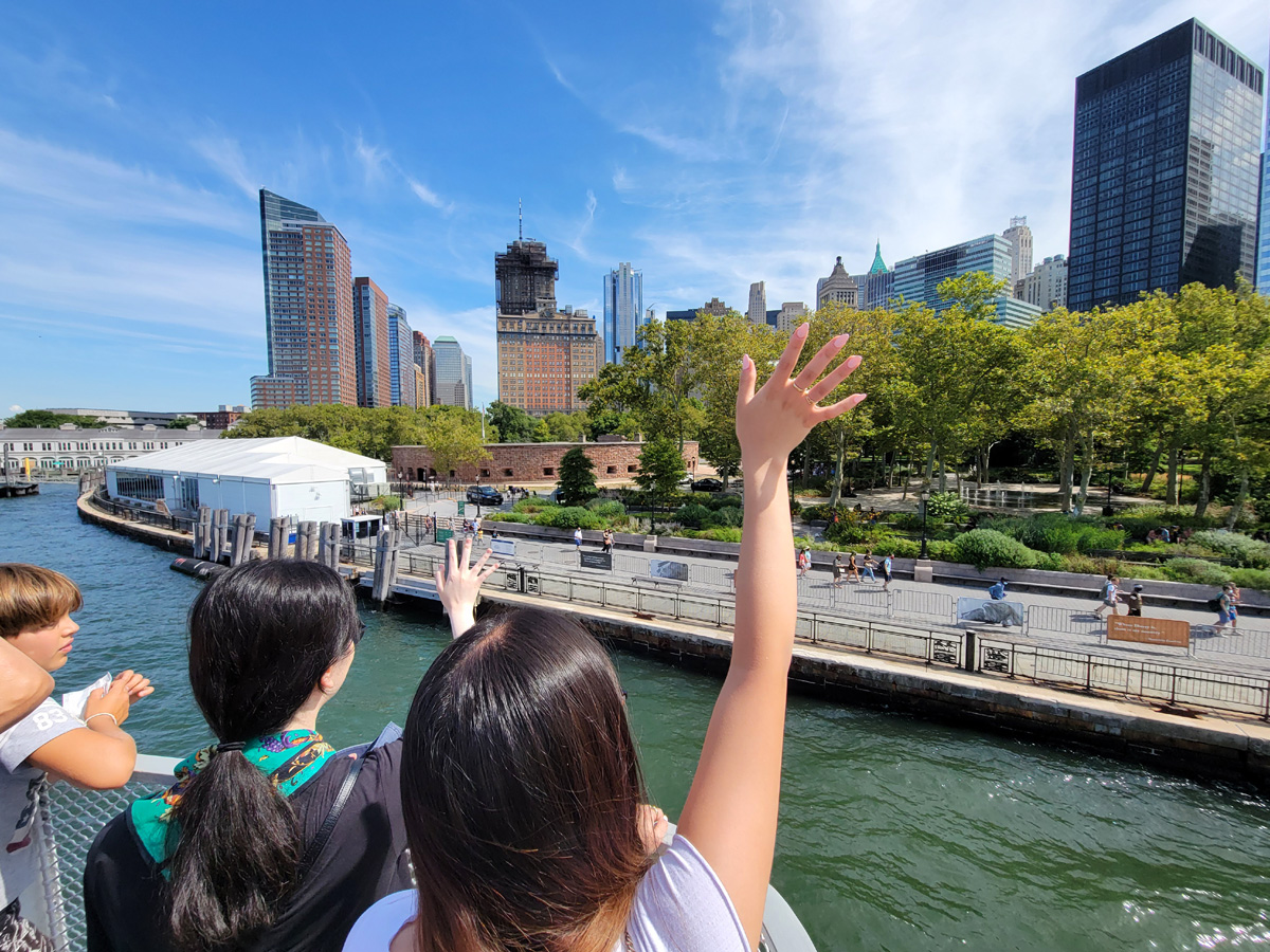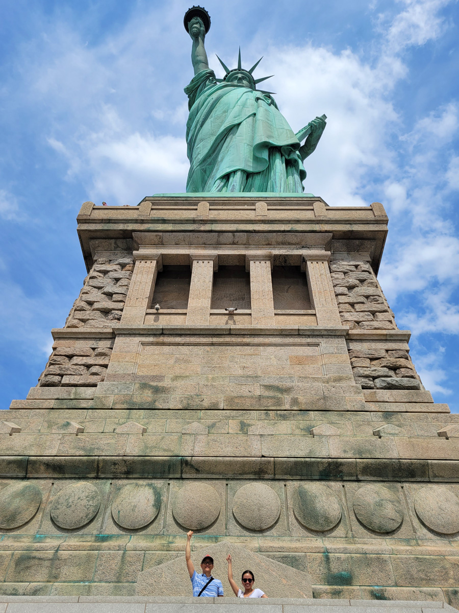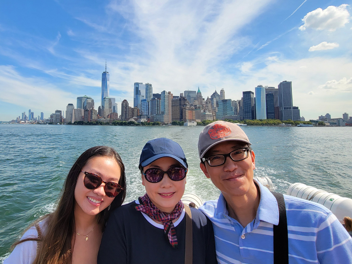 작은 리버티 섬(Liberty Island)의 높은 석조기단 위에 우뚝 서있는 자유의 여신상(Statue of Liberty)을 지혜와 조카들이 바라보고 있다. (제일 왼쪽은 다른집 아이) 특이한 것은 섬을 둘러싼 바다는 뉴저지(New Jersey) 주에 속하고, 땅은 뉴욕(New York) 주에 속하지만, 섬 전체가 일찌기 1924년에 내셔널모뉴먼트(National Monument)로 지정되었기 때문에 땅의 소유권은 연방정부에 있다.
