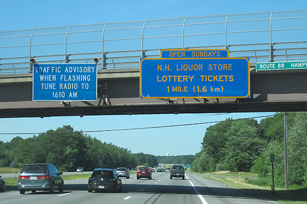 뉴햄프셔에 관해 하나만 더 소개하면, 고속도로에 이렇게 리커스토어(liquor store) 표지판을 큼지막하게 붙여 놓은 것이 특이했다. 왜냐하면 미국에서 소비세(sales tax)가 없는 5개주 중의 하나라서 인접한 다른 주들보다 싸게 술을 구입할 수 있기 때문이다. 특히 뉴햄프셔는 주소득세(state income tax)가 없는 9개주 중의 하나이기도 해서, 일반적으로 알래스카와 함께 소비세와 소득세가 모두 없는 주로 유명하단다. (알래스카는 카운티에서 약간의 소비세를 부과하는 곳이 있고, 뉴햄프셔는 이자와 배당소득에 대해서는 세금을 내야함)
