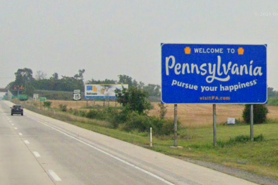 펜실베니아(Pennsylvania) 주 관광청의 "pursue your happiness"라는 홍보문구가 씌여진 환영간판이 딱 맞춰서 등장을 해주셨다! 인터넷에 다른 깨끗한 사진들도 많았지만, 마침 구글스트리트뷰가 아침 안개가 끼었던 그 때와 가장 비슷한 것 같아서 그대로 캡쳐를 했다.