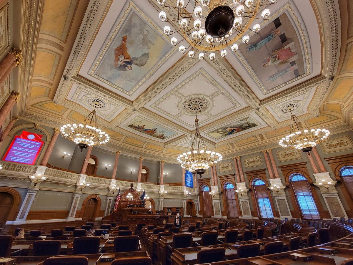 먼저 건물 서쪽에 있는 하원(House of Representatives) 본회의장 모습이다. 지금까지 사진들의 등장인물을 봐도 짐작을 하시겠지만, 작년 10월말 주중 목요일에 오후 2시에 주차장에서 여기까지 걸어오면서 마주친 다른 사람은 비지터센터에 있던 직원과 경비의 딱 두 명이었다.