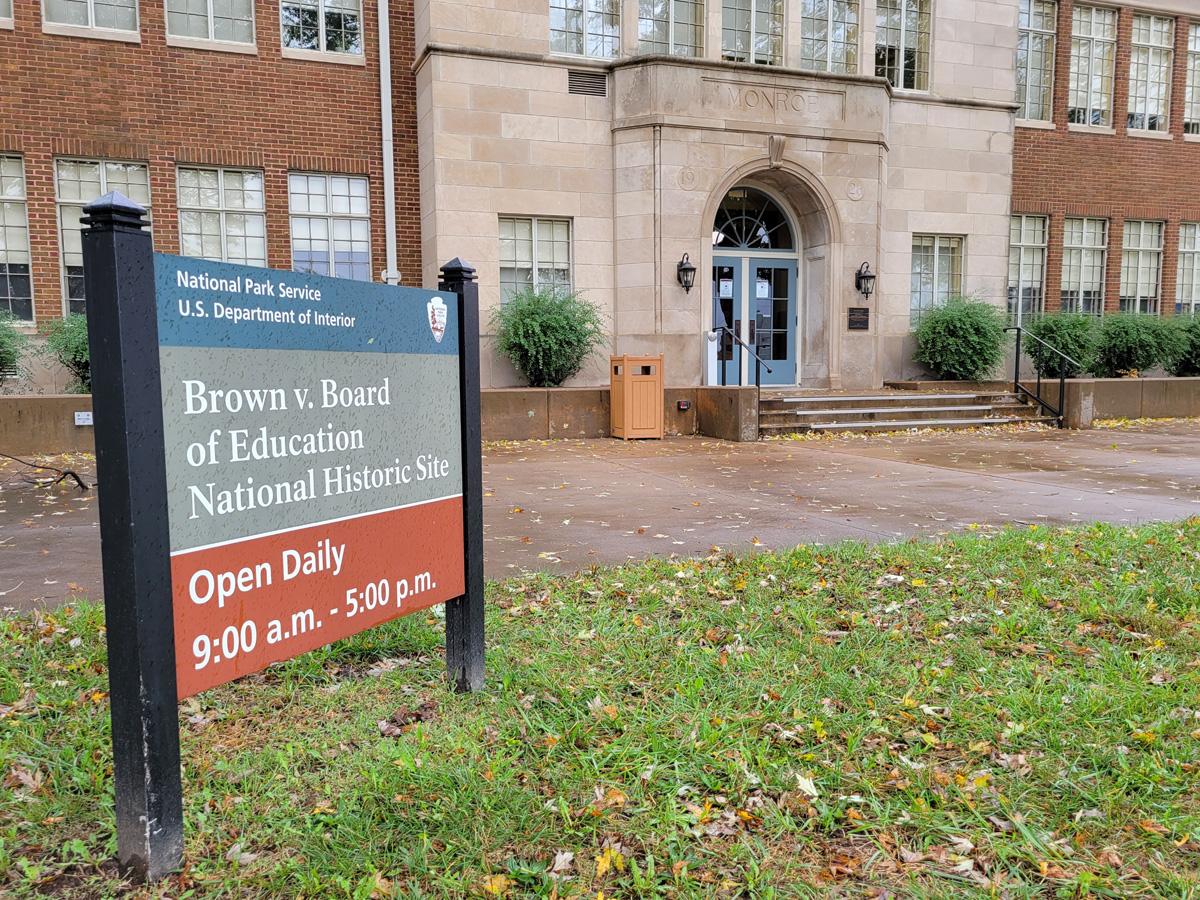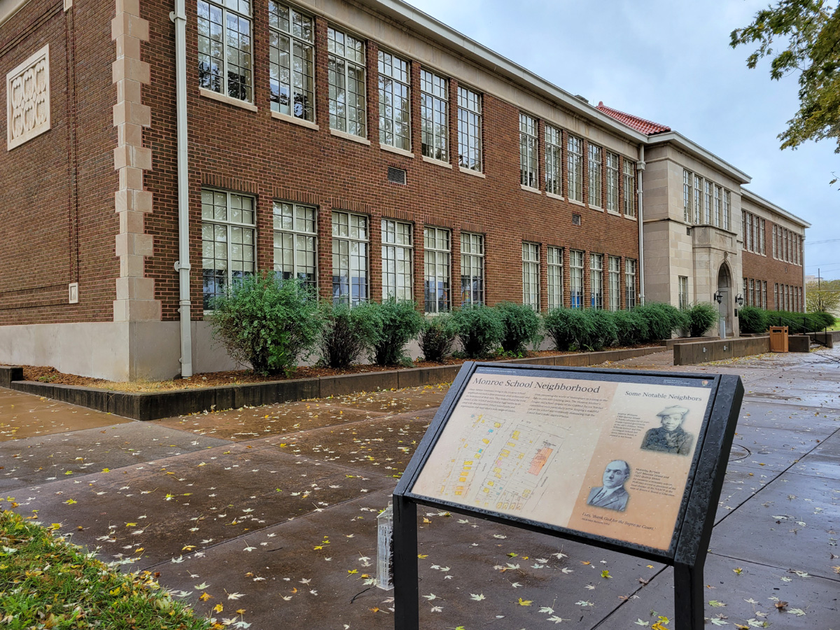 1952년에 여기 먼로(Monroe) 초등학교에 다니던 두 딸의 아빠인 Oliver Brown은 토피카 교육위원회에 집에서 가까운 섬너(Sumner) 초등학교로 딸들을 전학시켜 달라고 요청하지만, 그 학교는 백인전용이라서 흑인인 브라운의 딸들의 전학이 거절된다. 당시 미국은 1896년 대법원 판례에 따라 "분리하되 평등(Seperate but Equal)"이라는 논리로, 모든 분야에서 흑인과 백인의 이용시설을 분리하는 것이 합법적으로 가능했기 때문이었다.