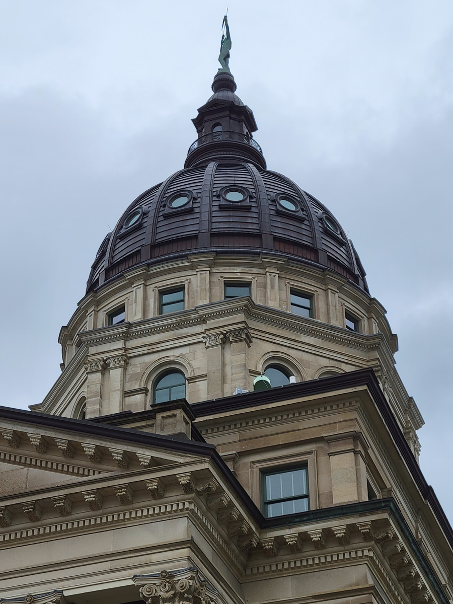 1866년부터 건설을 시작해서 1903년에 완공된 이 캔사스 주청사(Kansas State Capitol)는 워싱턴DC의 미국 국회의사당을 본따서 설계했다고 한다. 전체적인 건물의 크기는 당연히 작지만, 아내가 서있는 광장에서 저 돔 꼭대기까지의 높이는 304피트(93 m)로 국회의사당의 288피트(88 m)보다 더 높다는 것이 포인트다.