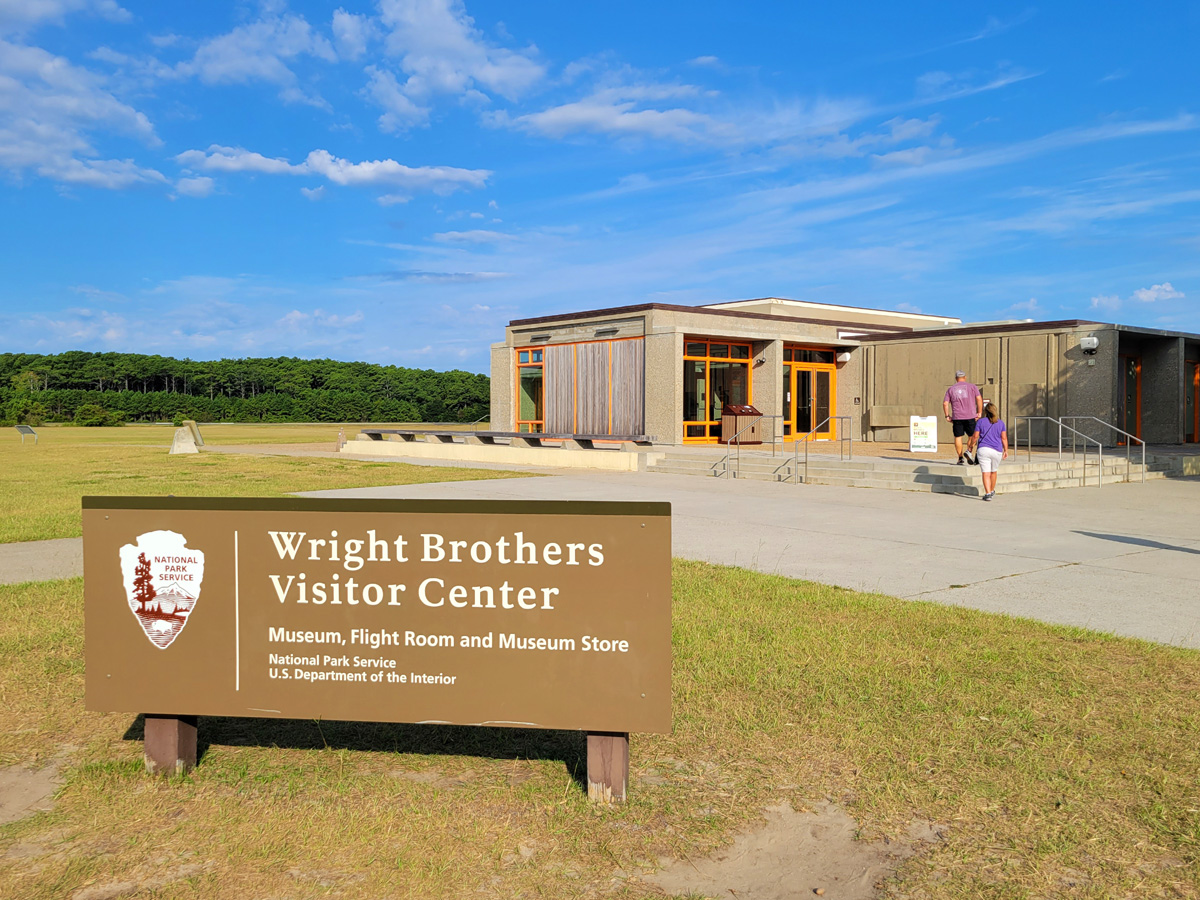 비지터센터로 들어가기 전에, 여기 마을의 이름이 '키티호크(Kitty Hawk)'라는 것부터 알려드린다. 인류 최초의 동력비행이 성공한 여기 지명을 따서 미군이 항공모함 USS Kitty Hawk 등 여러 항공기와 함선을 명명했다고 하는데, 원주민들이 "거위를 사냥하는 장소"라는 뜻의 Chickahawk라 부른 것이 서양인들에게 '고양이+매' 즉 Kittyhawk로 와전된 것이라 한다. (구글맵으로 위치를 보시려면 클릭)