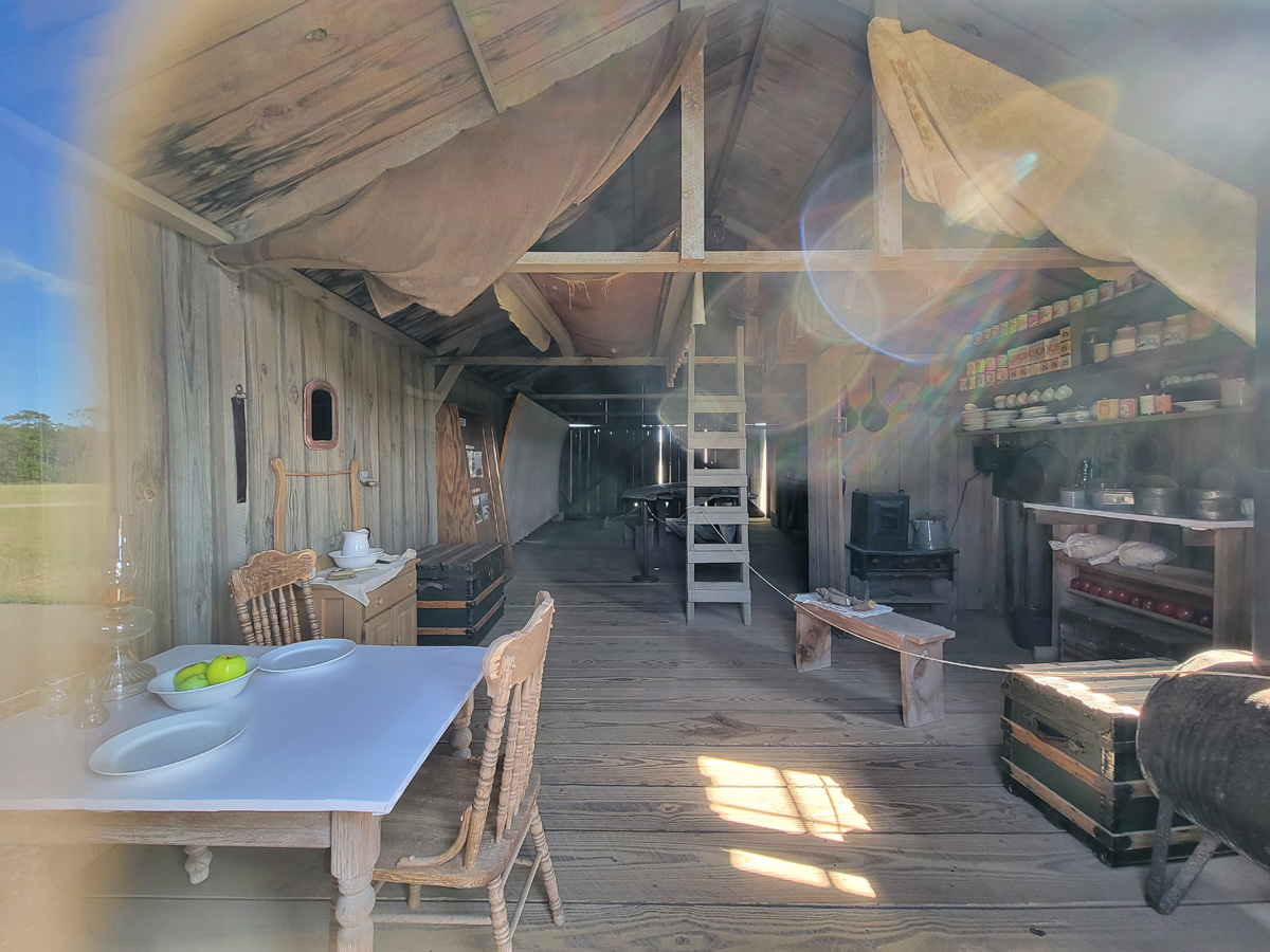 이 두 건물은 옛모습으로 복원을 한 것인데, 왼편의 텅 빈 건물은 비행기를 보관하는 격납고로 사용했단다. 오른편은 라이트 형제의 숙소였다고 하는데, 잠긴 문의 유리를 통해서 내부를 찍어보니까,