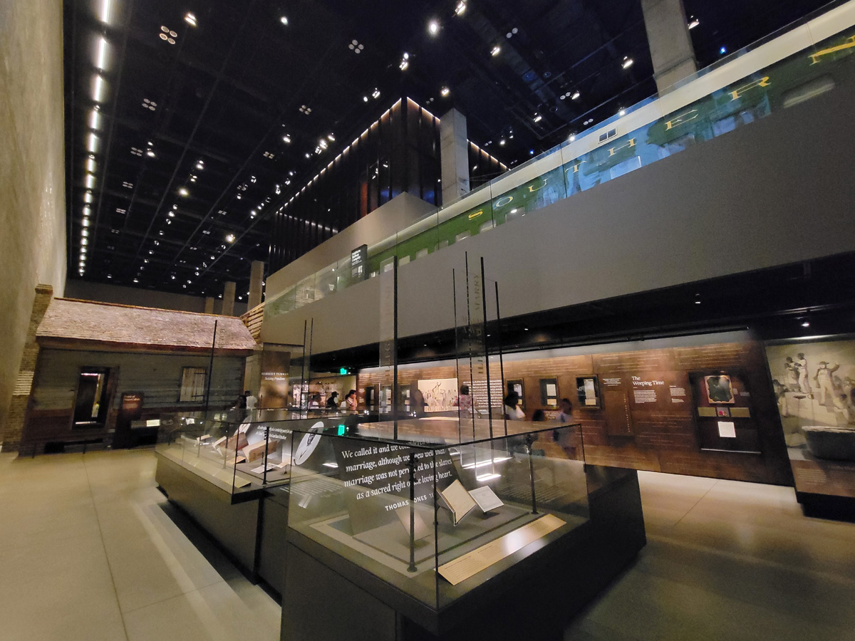 여기서 위를 바라보면 지하 4개층이 모두 뚫려있는데, 다른 기존의 박물관들보다 부지의 면적이 작은 대신에, 이렇게 지하로 깊이 파서 전시공간을 많이 확보한 것 같았다. 그 깊이 만큼이나 어둡고 답답한 흑인들의 역사는 제일 아래 C3층의 나머지 공간에서 다루는 남북전쟁과 노예해방으로도 거의 달라지는 것이 없었다.
