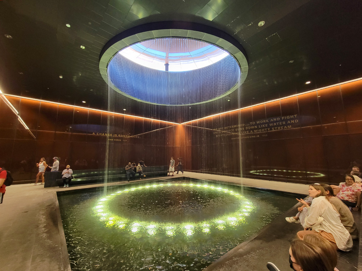 명상의 정원(Contemplative Court)이라는 장소는 지상에서 원형의 빛과 물줄기가 폭포수처럼 떨어지고, 안쪽 벽에는 킹 목사가 성경 아모스 5장 24절 "오직 정의(justice)를 물 같이, 공의(righteousness)를 마르지 않는 강 같이 흐르게 할지어다"에서 차용한 1955년 연설문의 해당 구절이 적혀있다.