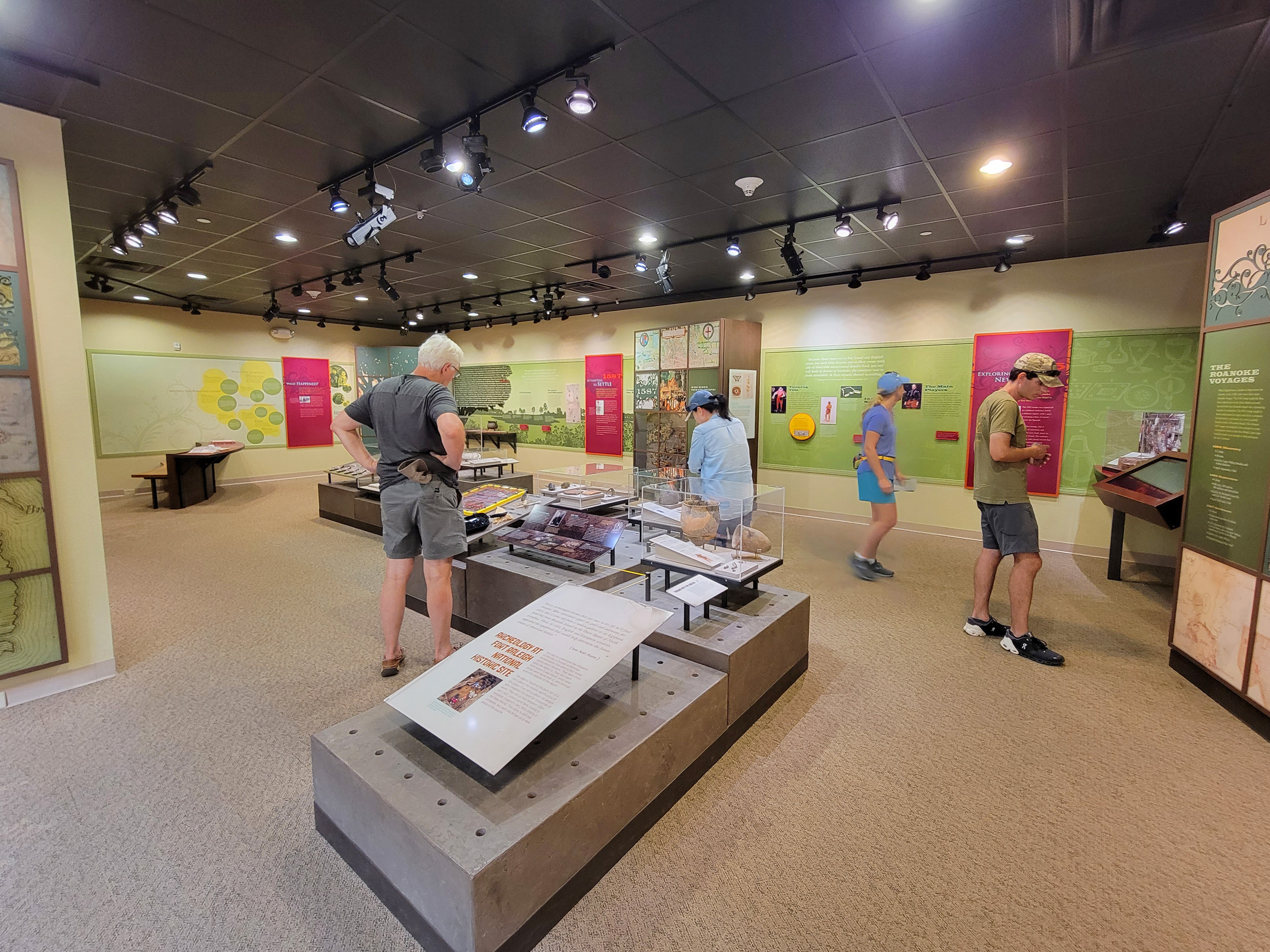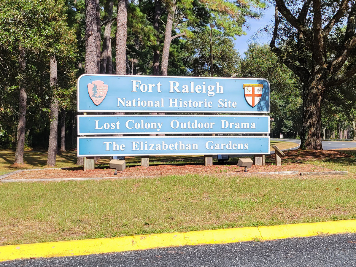 먼저 다른 색으로 표시된 엘리자베스 가든(The Elizabethan Gardens)은 1950년대에 조성된 영국식 정원인데, 시간도 없었고 별도의 입장료가 있어서 들리지 않았다. 또 수변무대(Waterside Theatre)는 1937년부터 지금까지 매년 여름마다, 이제 소개할 '잃어버린 식민지'를 소재로 한 로스트 콜로니(The Lost Colony) 야외공연을 하는 장소이다. 2차 세계대전 중인 1944년과 코로나 팬데믹이 정점이던 2020년의 두 시즌만 건너뛰고 지금까지 계속 같은 내용의 공연을 한 장소에서 하고 있는데, 이것은 오케스트라가 동원되는 공연으로는 미국에서 가장 오랫동안 이어지는 기록이라고 한다.