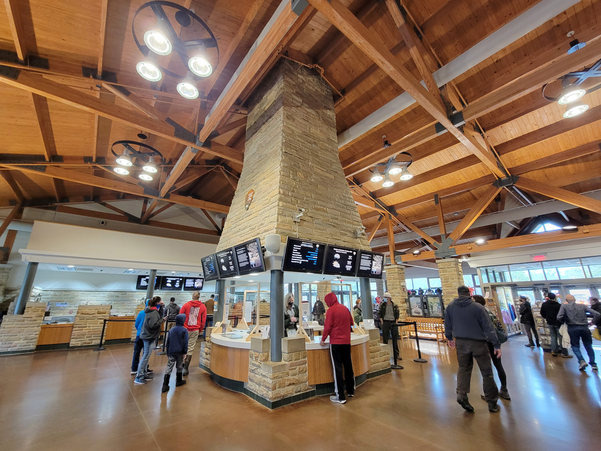 마침내 매머드 동굴(Mammoth Cave) 국립공원의 비지터센터에 도착을 했는데, 주차장과 건물이 엄청나게 크고 사람들도 많아서 정말로 둘 다 놀랬던 기억이 난다. (구글맵으로 위치를 보시려면 클릭)