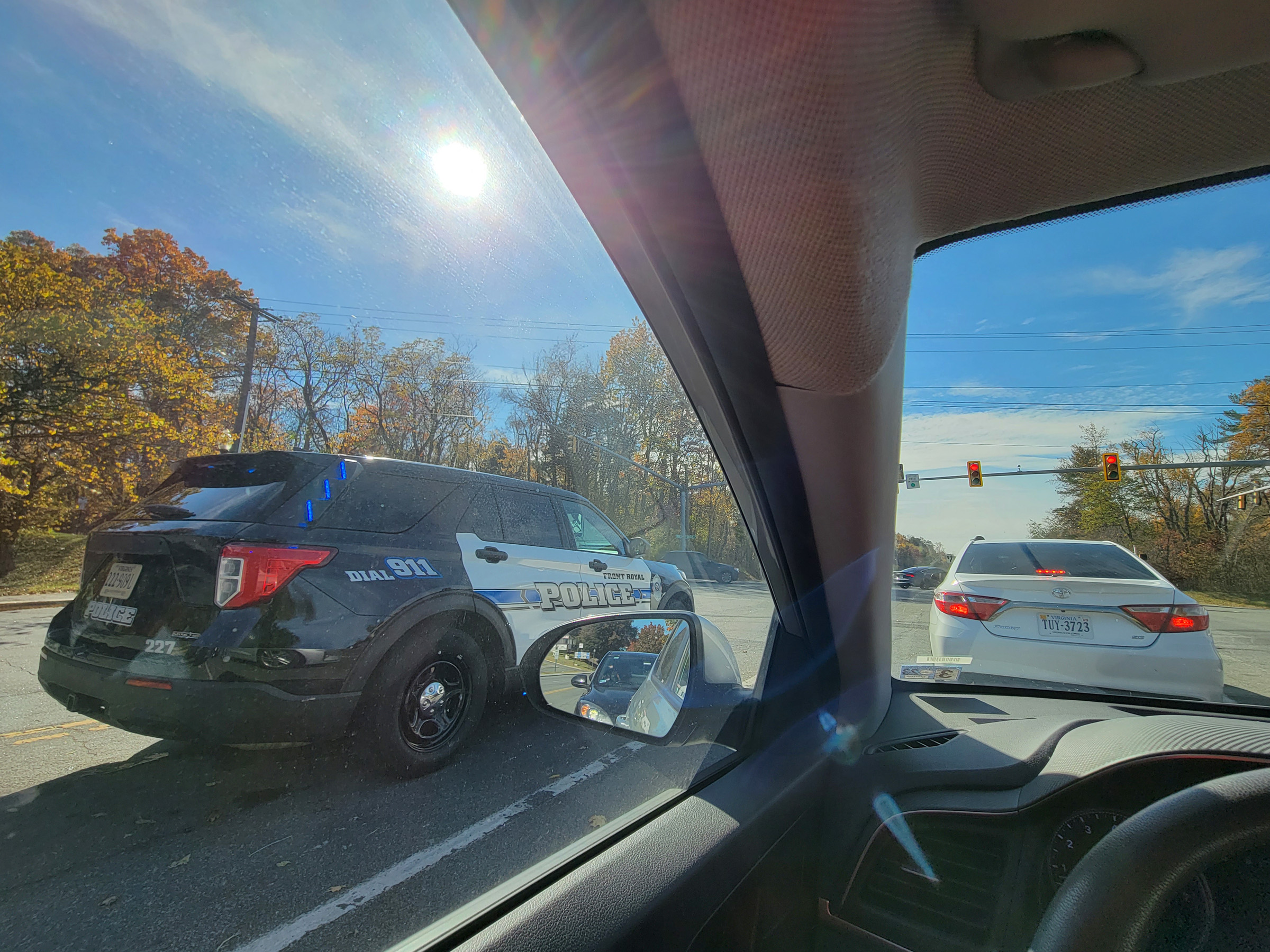 (과속으로 붙잡히거나, 움직이며 찍은 것은 아니니까 놀라지 마시고) 경찰차 문짝에 작게 씌여진 프론트로열(Front Royal)이라는 독특한 이름의 마을까지 집에서 1시간여 걸렸는데, 단풍놀이를 나온 차들이 너무 많아서 교차로에서 경찰들이 교통통제를 하고 있었다. 십여분 걸려서 빨간불을 지나 다음 신호에서 좌회전을 하니까,