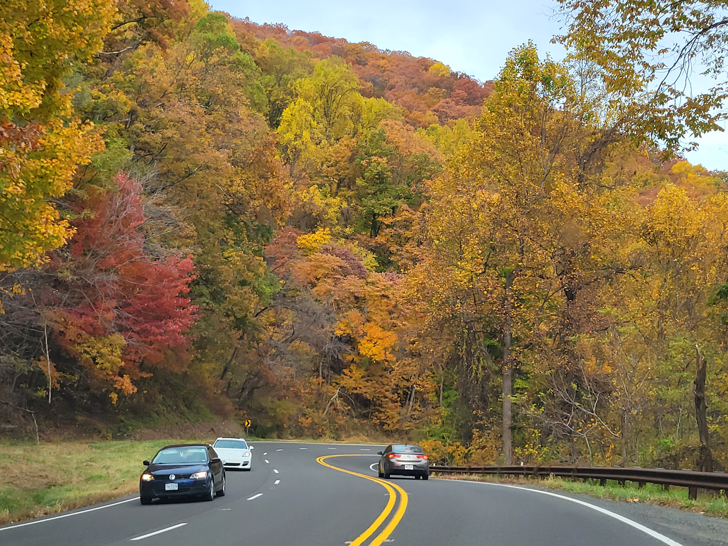 집앞에도 낙엽이 쌓이기 시작해서 셰넌도어에 단풍구경을 가기에는 너무 늦은 것이 아닐까 걱정했는데, 아직은 산이 많이 높지 않아서 그런지 노란 단풍길이 이뻐서 찾아온 보람이 있었다.