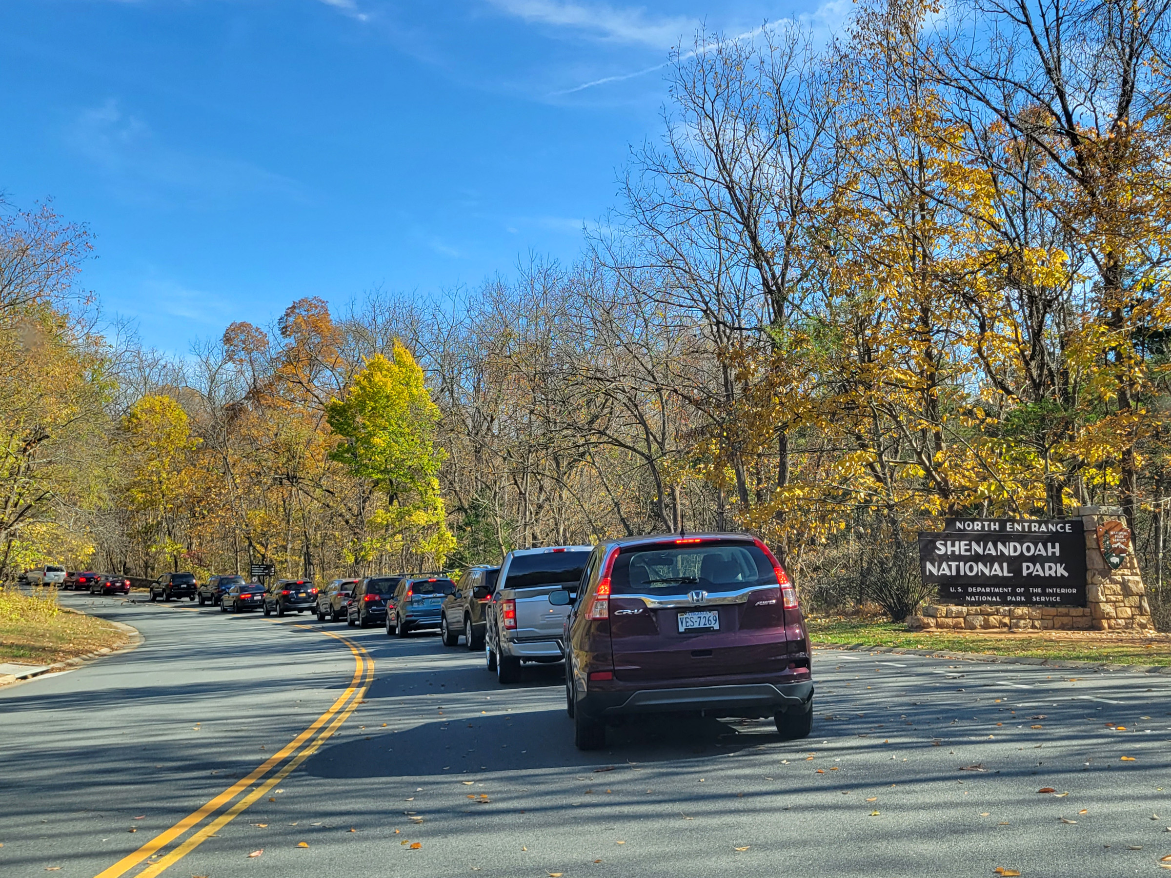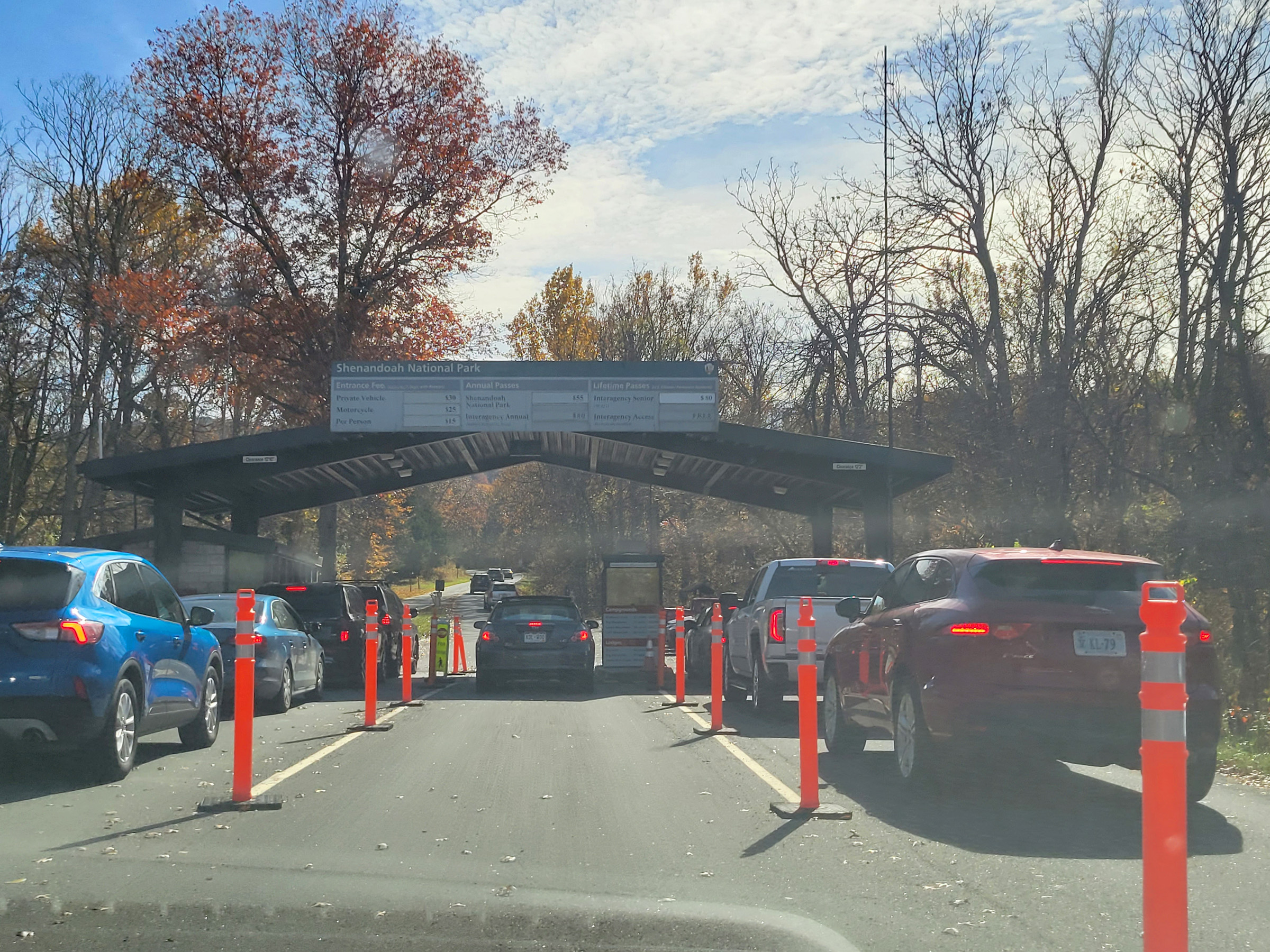 쉐난도어 국립공원(Shenandoah National Park)의 북쪽 입구를 알리는 표지판이 등장을 하고, 그 옆으로 차들이 한 줄로 길게 늘어서서 또 엉금엉금 기어가고 있었다. "늦게 나와서 이렇게 기다리는건 우리 스타일이 아닌데..."