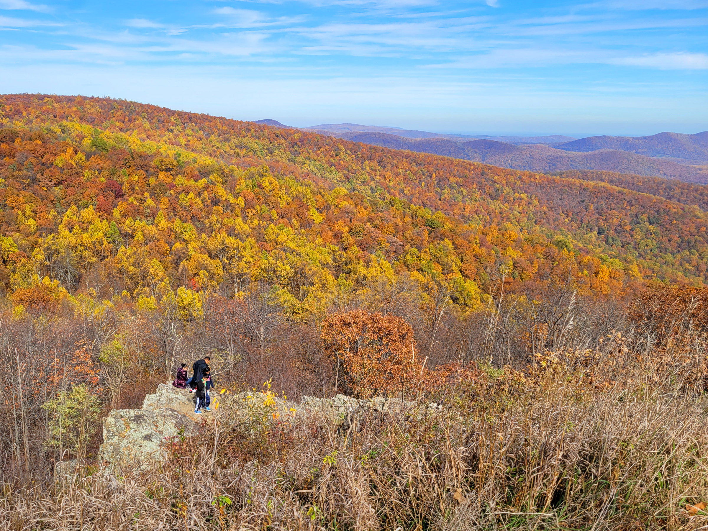 산맥 동쪽을 향하는 Indian Run Overlook에서 멀리 바라보이는 언덕들도 모두 울긋불긋했다.