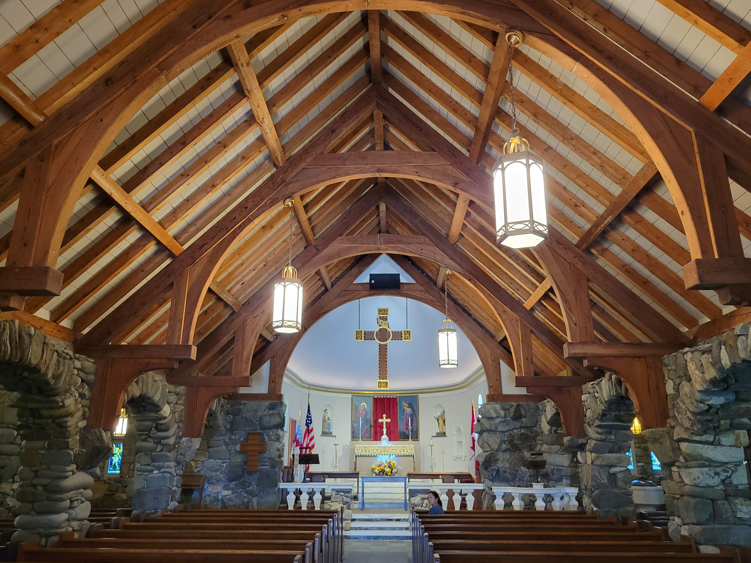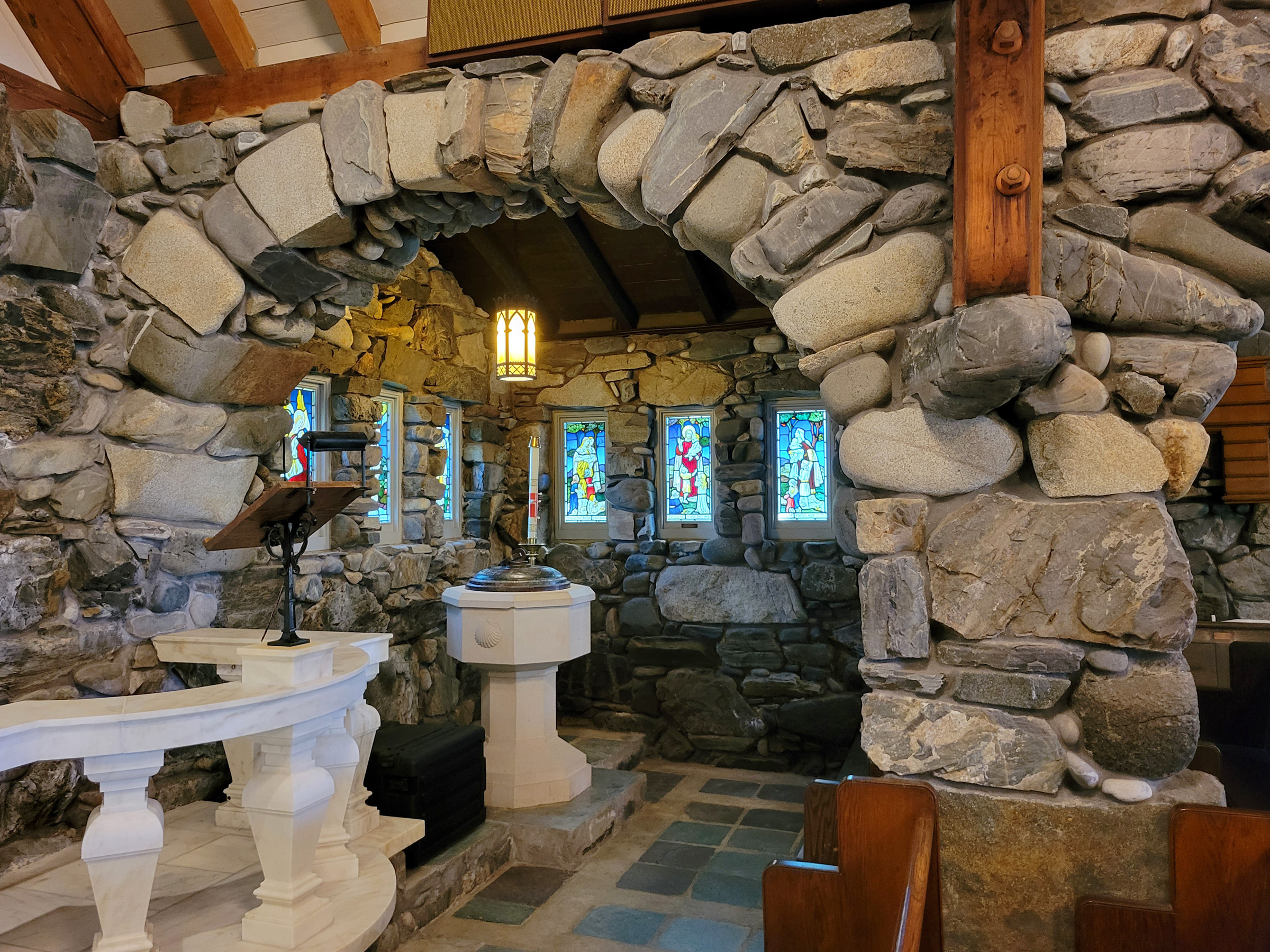 자세히 보면 정말로 커다란 돌들로 멋지게 아치를 만들었고, 스테인드글래스도 굉장히 아름다웠다. 단순히 자연석으로 장식을 한 것이 아니라, 천장을 제외한 모든 기둥과 벽을 말 그대로 자연석을 다듬어서 쌓아 올린 것이었다.