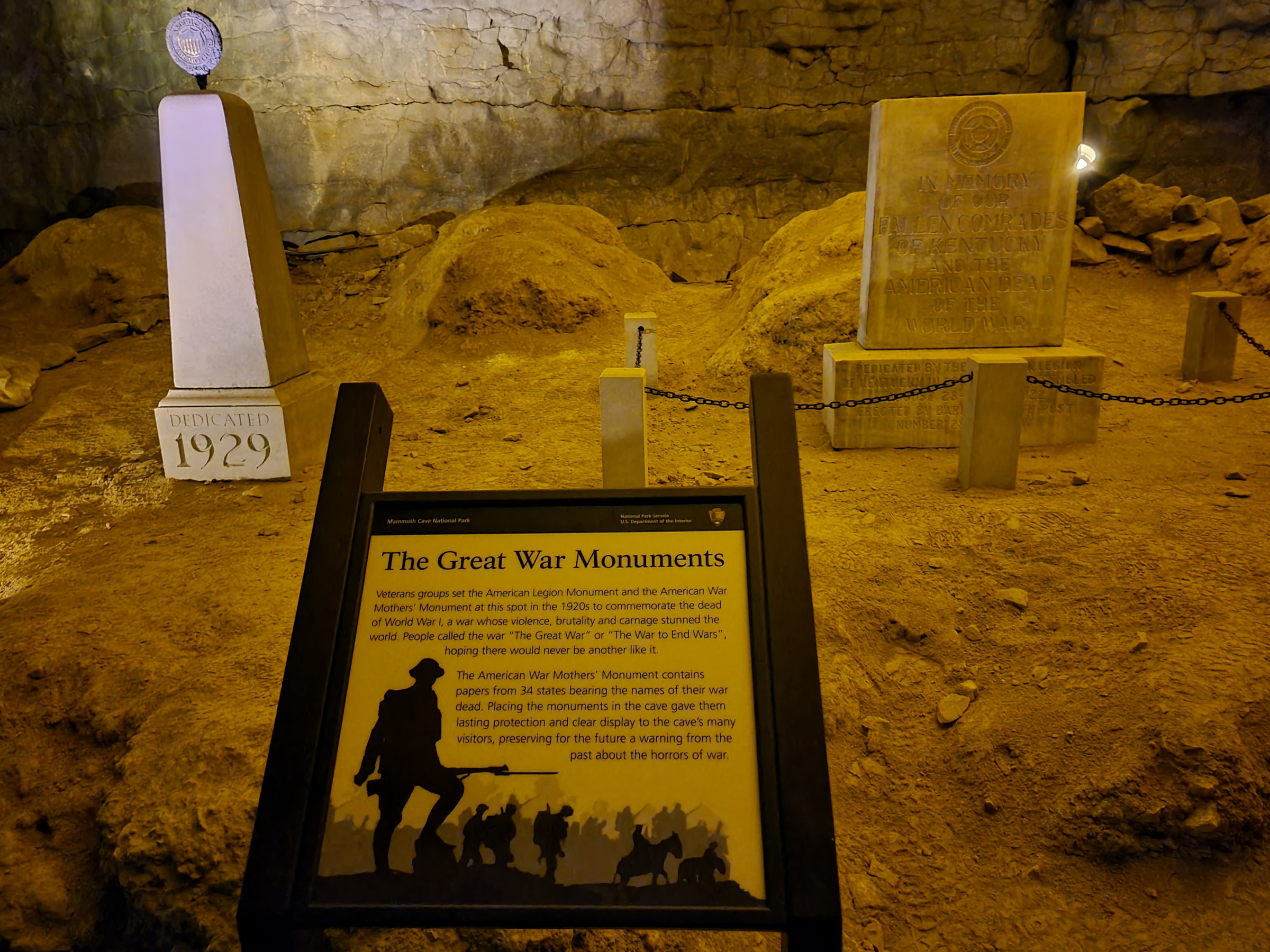 들어올 때는 못 봤는데, 로툰다의 한 쪽 벽에는 1920년대에 만들어진 제1차 세계대전의 희생자를 기리는 기념비가 2개 만들어져 있다. 안내판의 설명을 보면 처음부터 기념비의 풍화를 막고 사람들에게 많이 보여줄 목적으로, 국립공원으로 지정되기 전에도 인기있는 관광지였던 이 동굴안에 일부러 만든 것이라 한다.