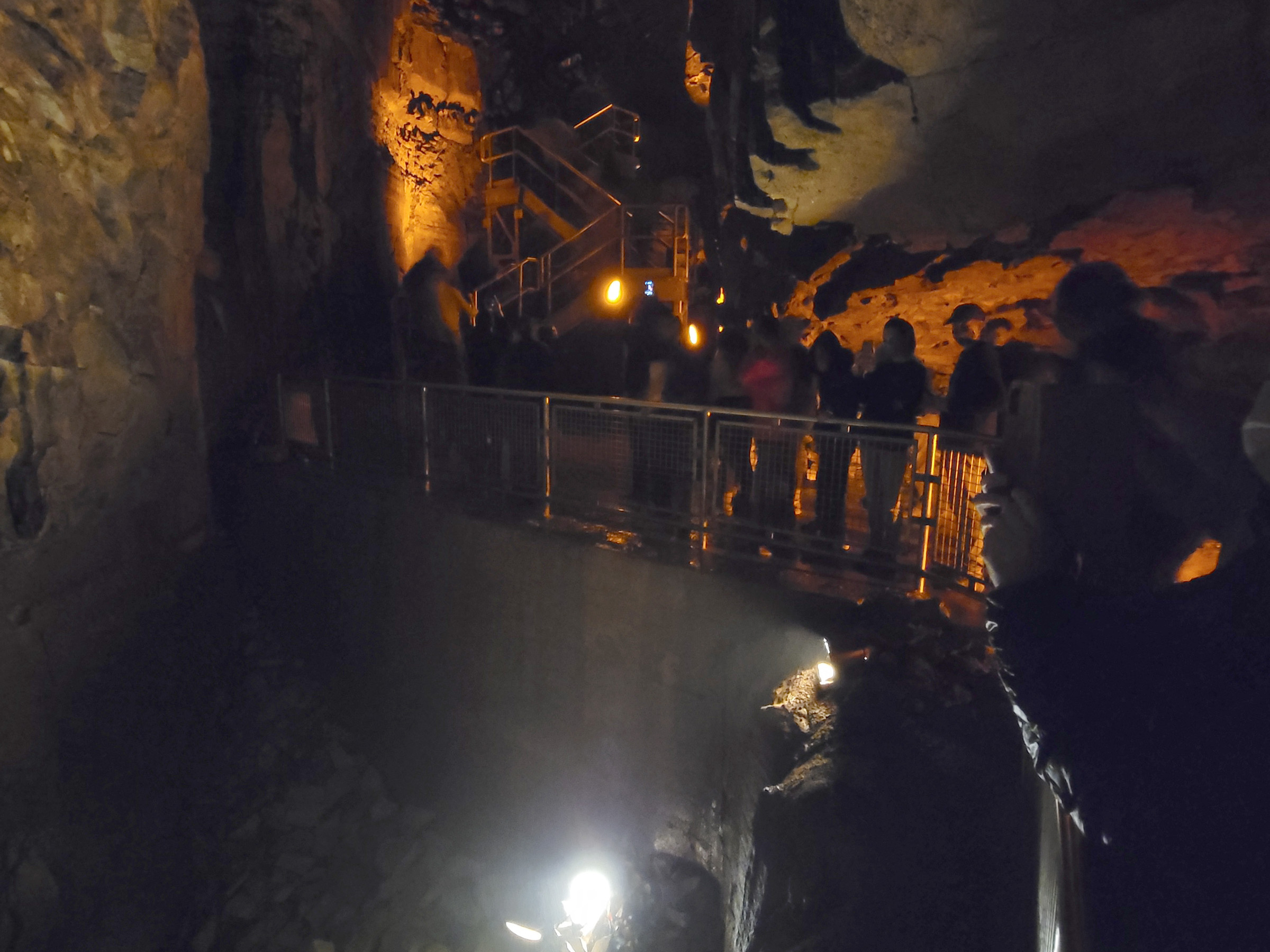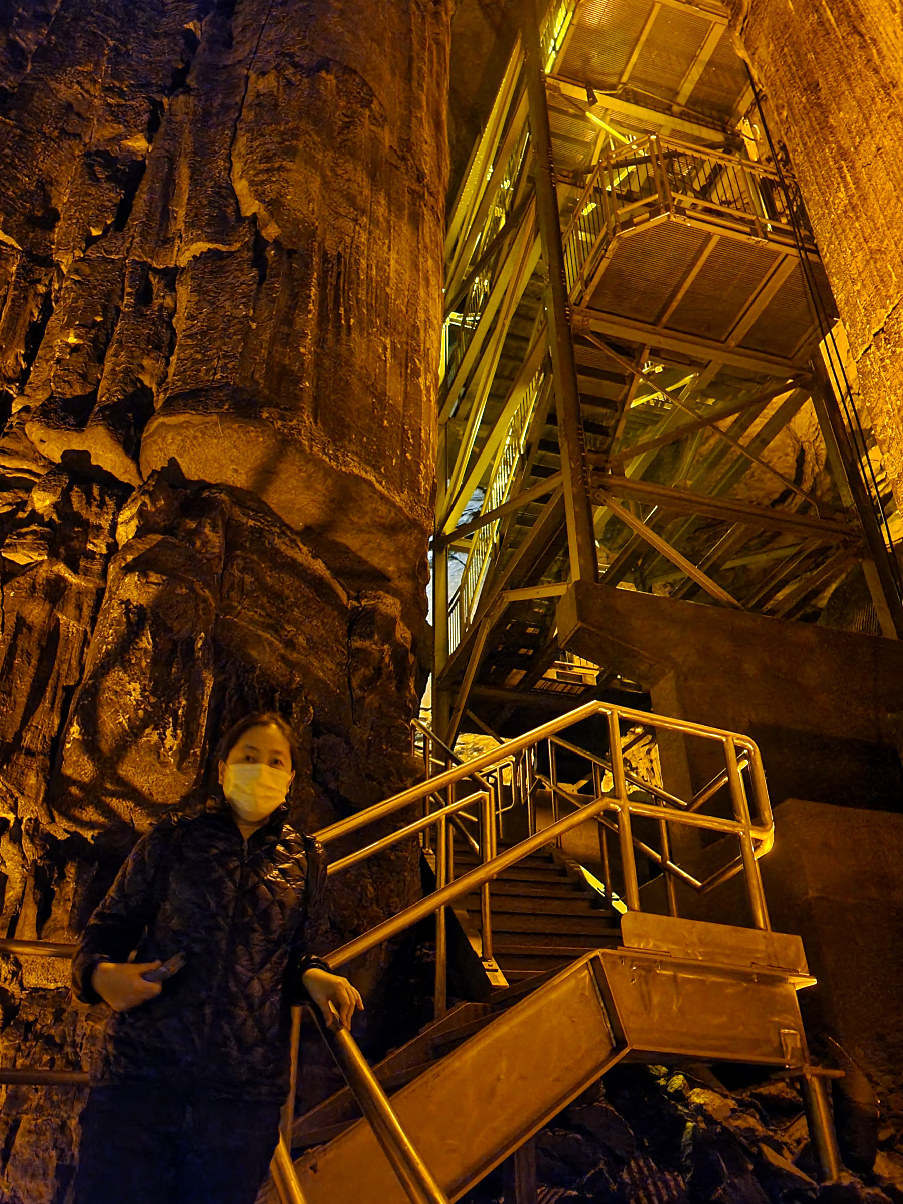 다리를 지나오면 이렇게 머리를 부딪힐 만큼 낮은 틈으로 만들어진 계단을 또 계속해서 내려가는데, 저 너머에 이 투어코스의 하이라이트 구간이 나온다. "괜히 걱정했네... 역시 동굴투어는 이래야 제맛이지~"