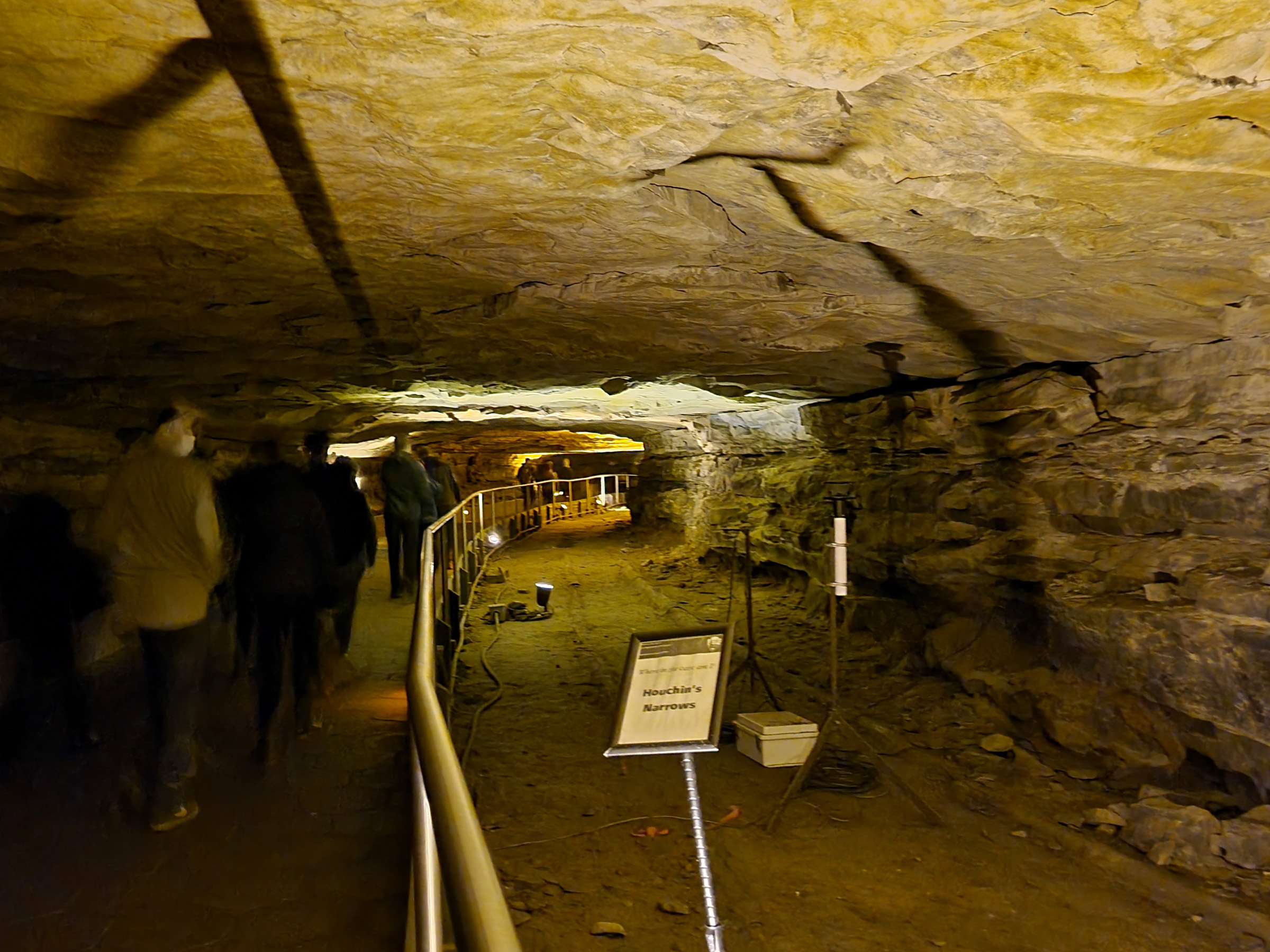 미국 중서부 켄터키(Kentucky) 주에 있는 매머드 동굴 국립공원(Mammoth Cave National Park)을 구경하는 가장 일반적인 방법인 히스토릭투어(Historic Tour)를 막 시작했다. 다행히 엘리베이터가 아니라 지상에서 계단으로 여기까지 내려와서 철문을 통과하면 처음 Houchins Narrows 통로가 나오는데, 이름처럼 좁지도 않을 뿐더러 바닥에는 육각형의 보도블럭까지 깔아놓았다. (내셔널파크에 대한 소개와 동굴투어의 지도를 보시려면, 여기를 클릭해서 전편을 보시면 됨)