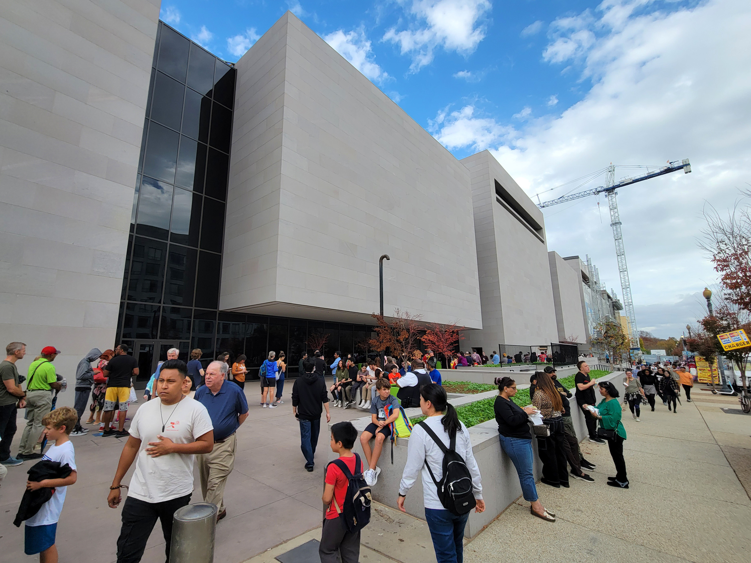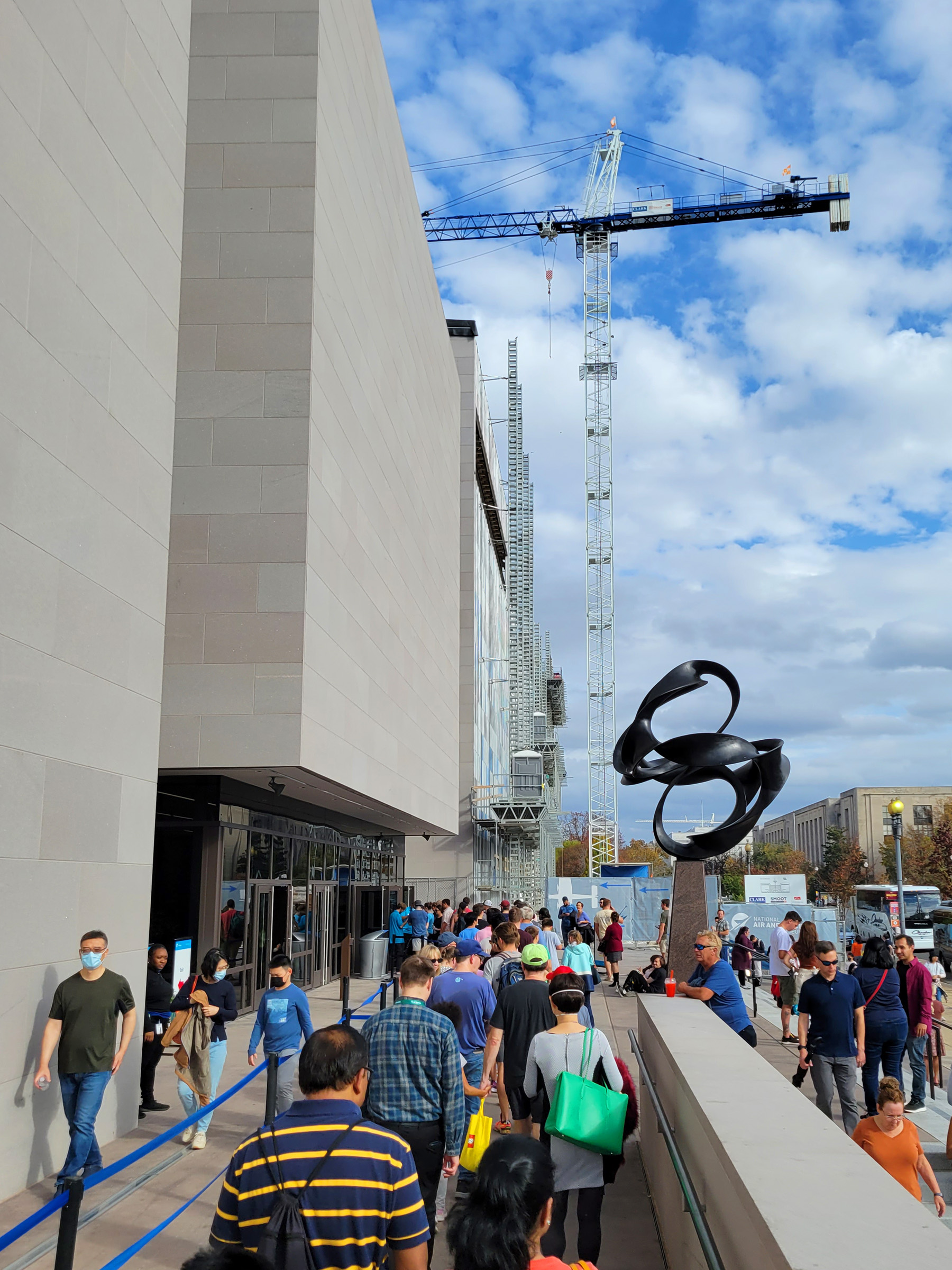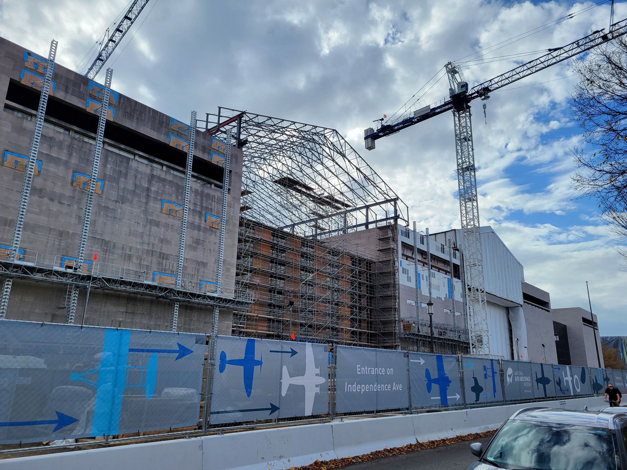 내셔널몰 잔디밭에서 보면 아직도 이렇게 공사 가림막 너머로 타워크레인들이 세워져 있지만, 사진 오른편에 깨끗하게 보이는 건물 서쪽의 8개 전시실은 정확히 4년만인 올해 10월에 리모델링을 마치고 먼저 부분개장을 했다고 해서, 임시 출입구가 만들어진 Independence Ave의 남문으로 찾아갔다. (구글맵으로 위치를 보시려면 클릭)