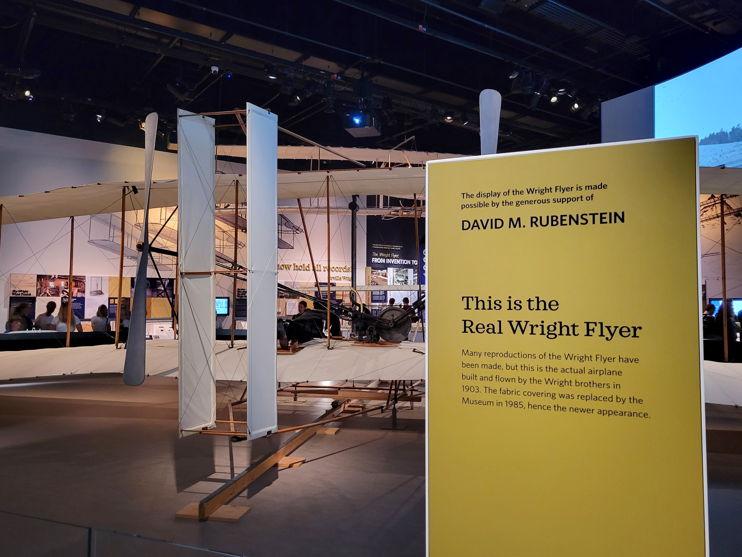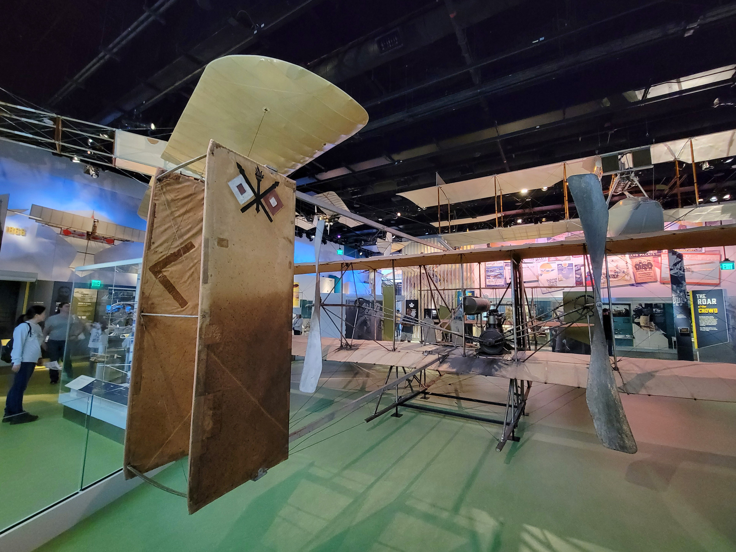 107호 <Wright Brothers>에는 라이트 형제가 직접 제작한 인류 최초의 동력 비행기로 1903년에 하늘을 날았던 바로 그 '진짜 라이트 플라이어(Real Wright Flyer)' 실물이 전시되어 있는데, 너무 깨끗한게 120년된 것처럼 보이지 않는 이유는 날개를 덮고있는 천들은 1985년에 모두 새로 교체했기 때문이라고 씌여있다.