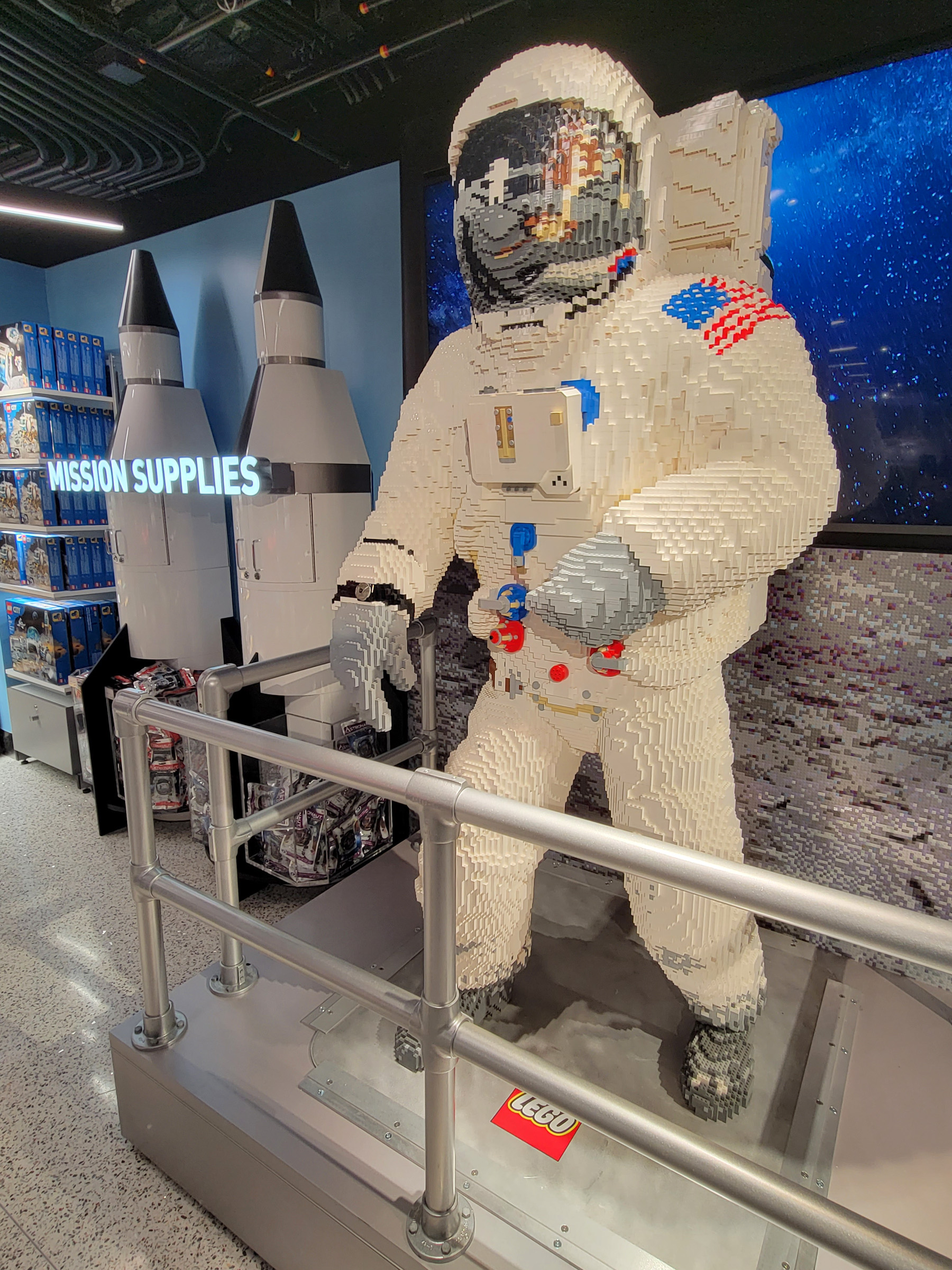 1층의 기념품 가게는 지하로 바로 연결되어 계속 이어지는데, 내려가니까 이렇게 레고로 달에 착륙한 우주인을 만들어 놓았다. 헬멧에 비친 다른 우주인과 착륙선까지 보이도록 만들어 놓았고, 그 옆으로는 우주와 관련된 각종 레고 제품들을 여기서 바로 살 수 있도록 해놓았는데... "나는 2028년쯤에나 하나 더 살 수 있겠군~" 그 이유는 직전의 링크를 클릭하셨다면 아실 것이다.