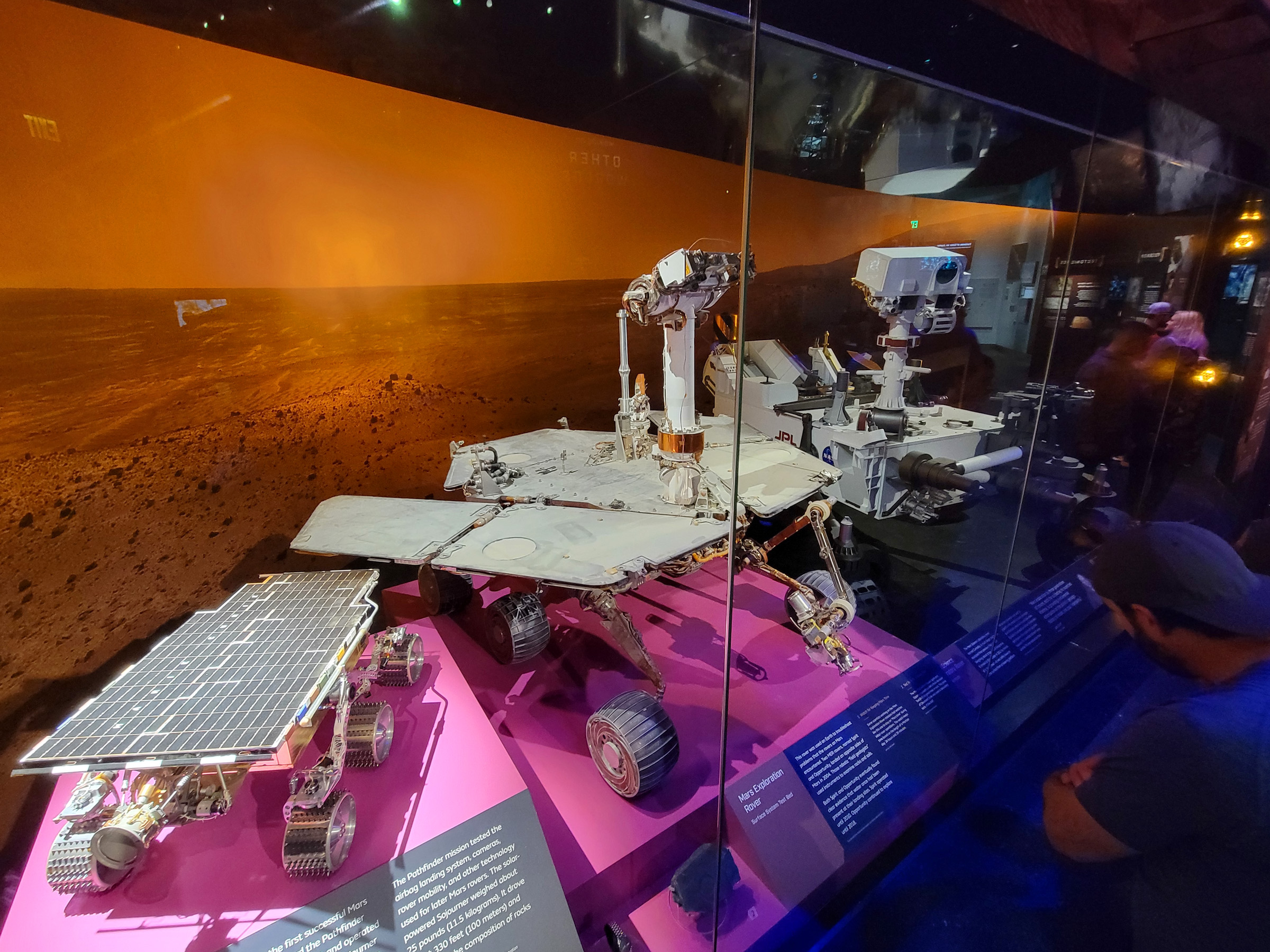 역시 화성(Mars)에 관한 전시가 많은데, 차례로 화성표면에 착륙해서 탐사임무를 수행했던 차량들인 소저너(Sojourner), 오퍼튜니티(Opportunity), 그리고 큐리오시티(Curiosity)가 모두 한 곳에 비교 전시되어 있다. (여기를 클릭하면 이 Mars Rover들을 개발한 LA의 제트추진연구소 오픈하우스 방문기를 보실 수 있음)