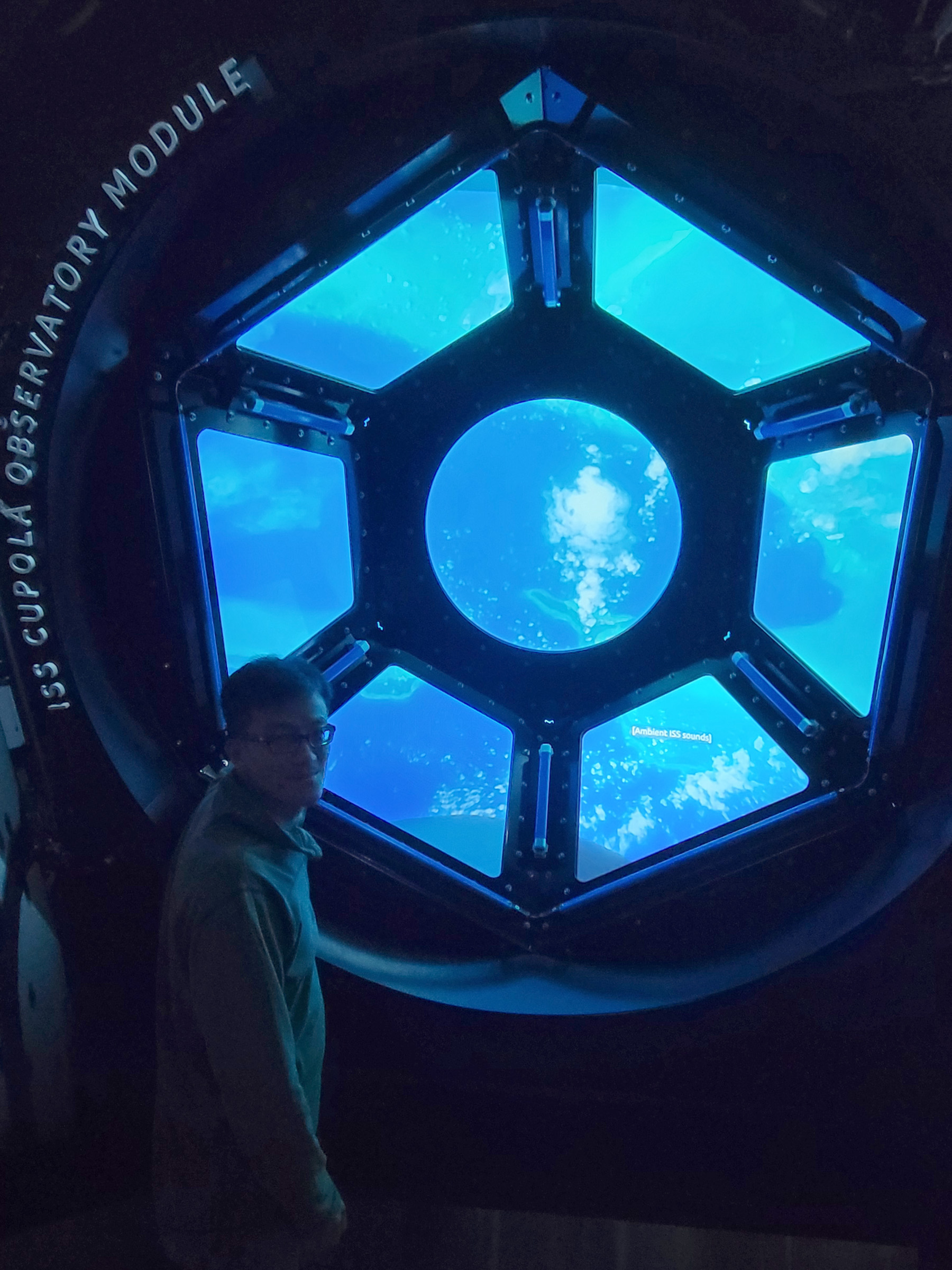 국제 우주정거장 쿠폴라 관측모듈(ISS Cupola Observatory Module)의 육각형 창문을 통해서 지구를 바라보고 있는 위기주부... 우주정거장 방문한 셈 치기로 했다. ㅎㅎ