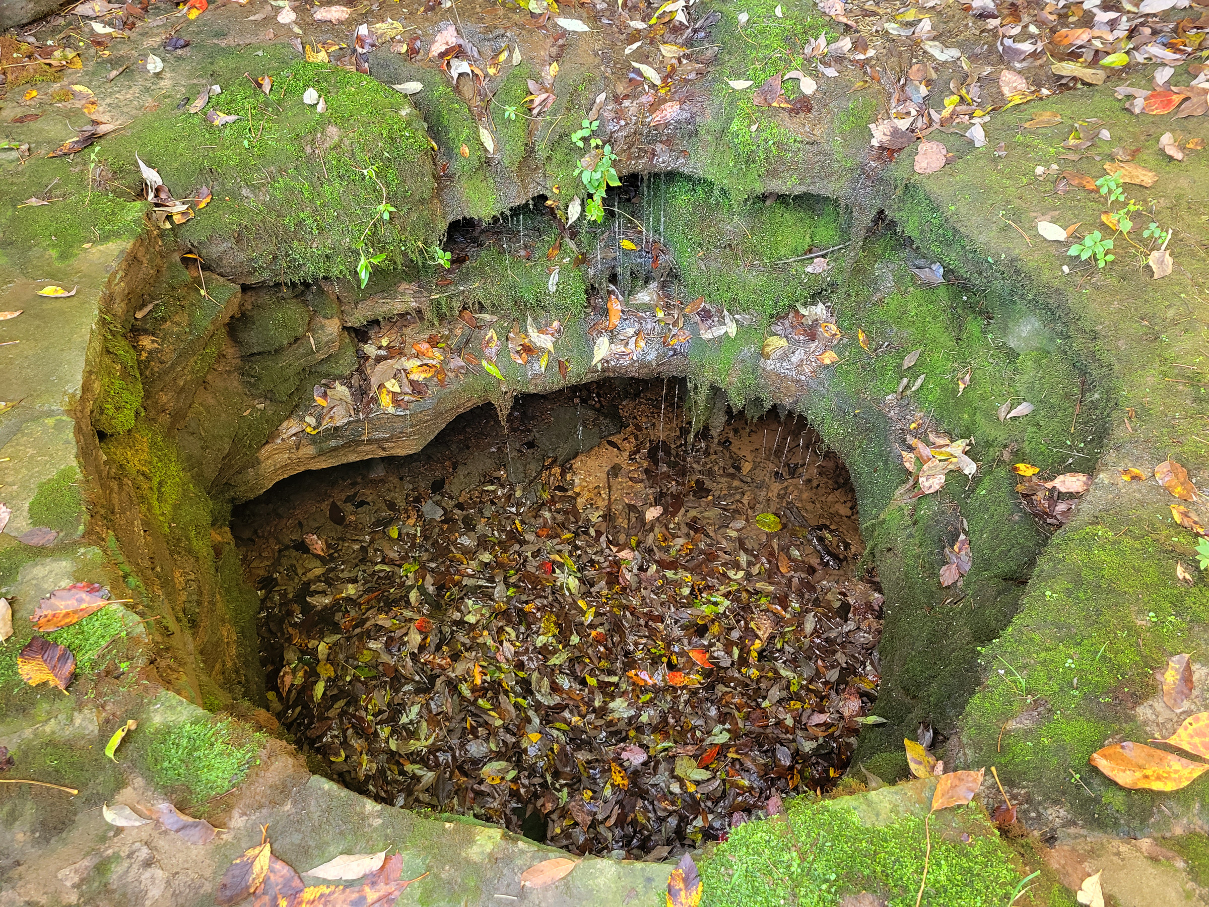 대륙횡단기 전편의 매머드 동굴 국립공원 여행기에서 설명한 바와 같이, 켄터키주는 카르스트 지형이라서 땅이 꺼진 곳에 지하수가 고인 우물이 많은데, 여기는 더 이상 물은 보이지 않고 지금은 젖은 낙엽들만 잔뜩 구멍에 쌓여 있었다.