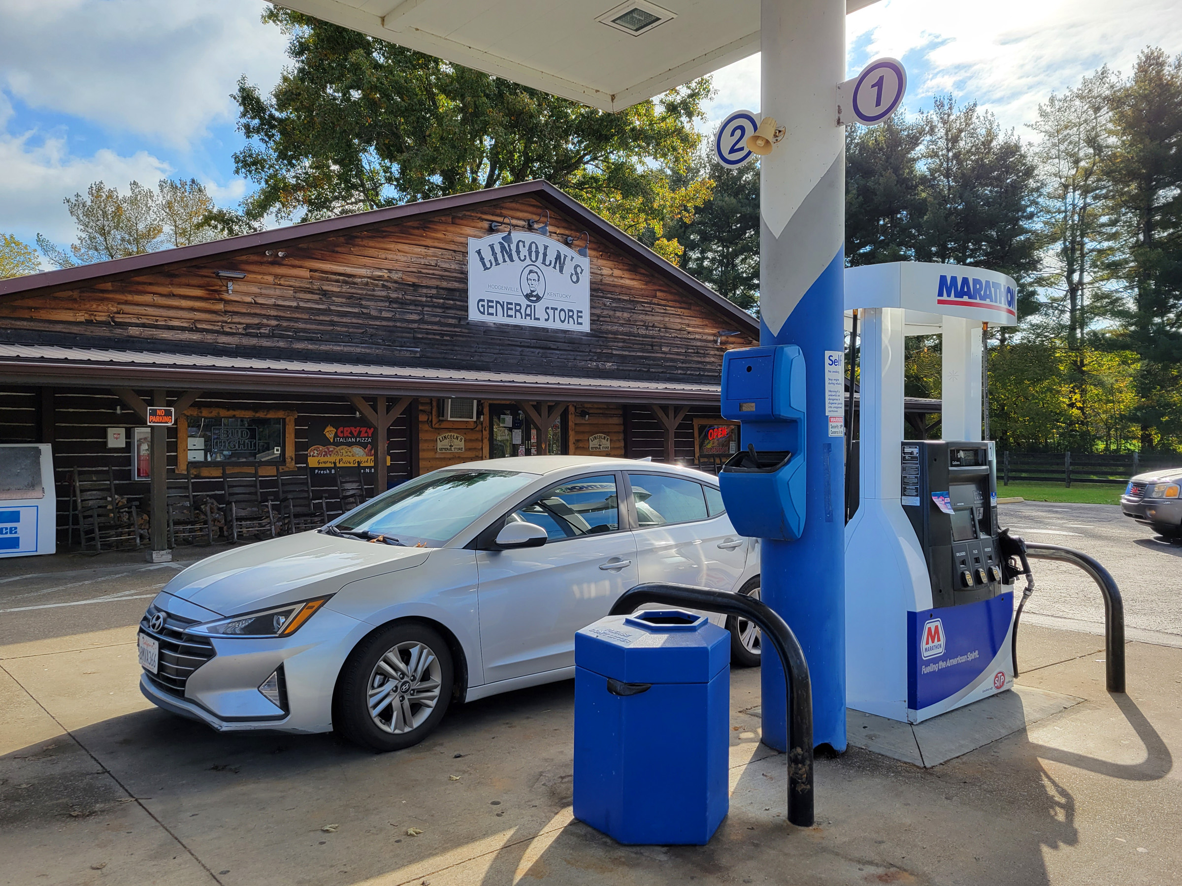 그래서 커플셀카를 찍는데 웃음이 절로 나왔던 모양이다...^^ 이렇게 링컨 탄생지(Abraham Lincoln Birthplace) 국립역사공원 방문을 마치고 공원 밖으로 나갔는데, 차에 기름을 넣어야 해서 제일 먼저 눈에 띄는 주유기가 있는 가게로 들어갔다.