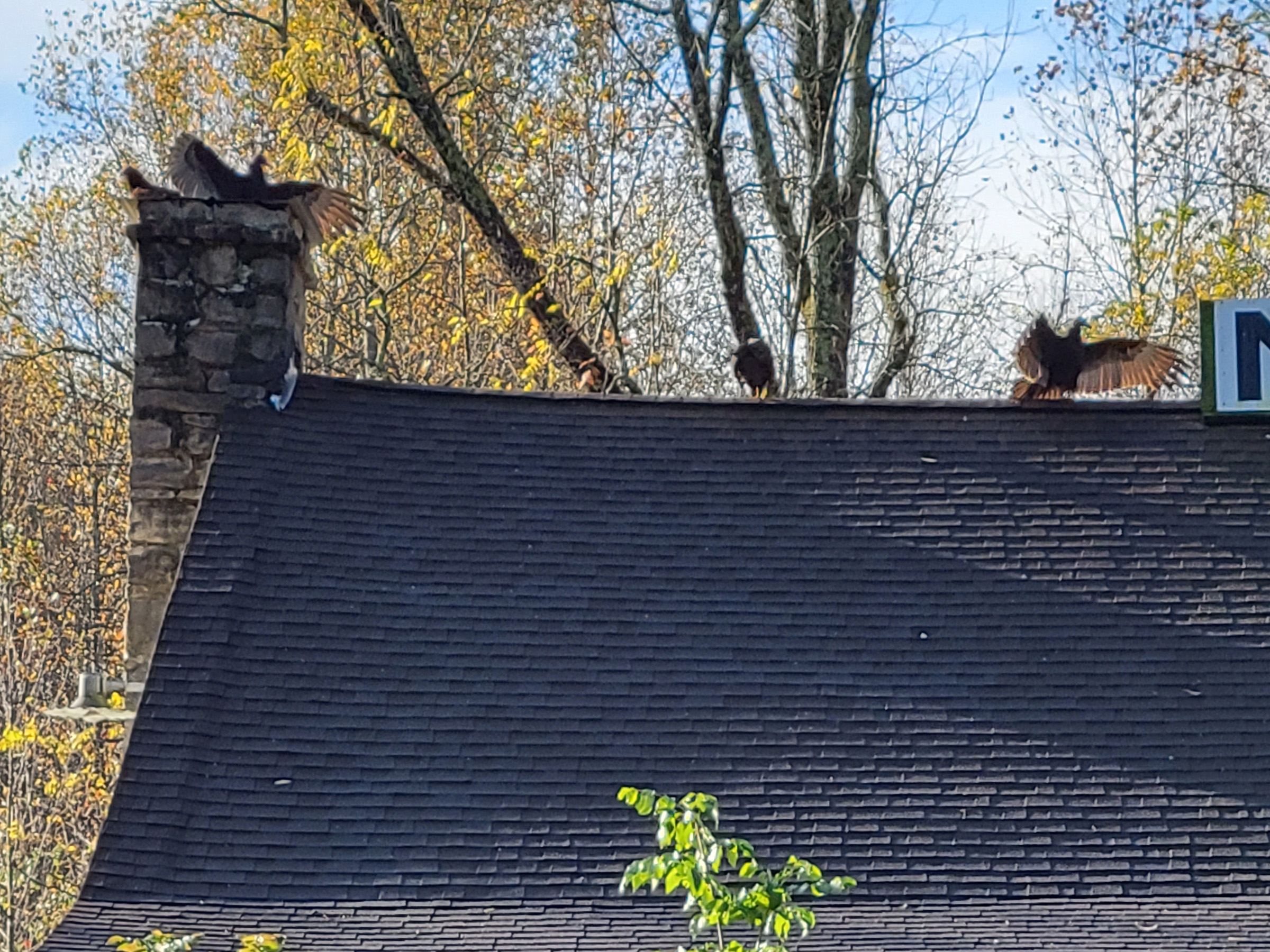 그 지붕에 올라 앉아서 아침 햇살에 젖은 날개를 펼쳐서 말리는 새들의 모습인데, 커다란게 독수리처럼 보였다.