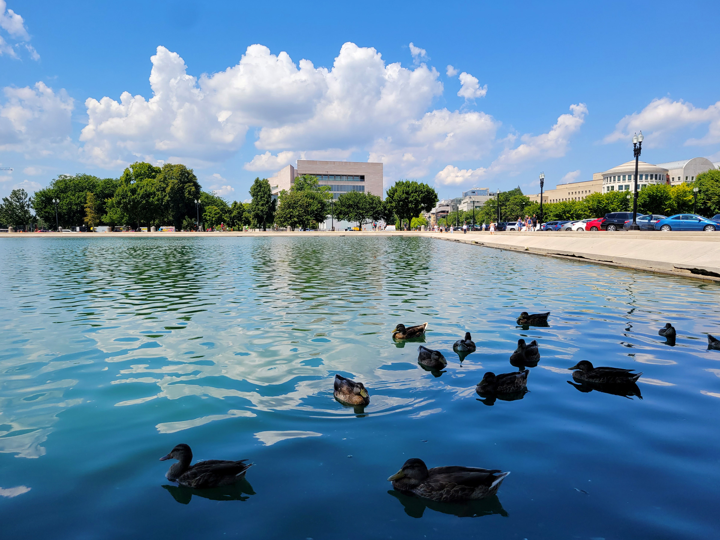 그 때는 여기 캐피톨 리플렉팅풀(Capitol Reflecting Pool)도 보수중이라 물이 하나도 없는 황량한 모습이었지만, 지금은 이렇게 오리들이 유유히 떠있었다. 이제 연못 너머 정면에 보이는 현대미술관을 시작으로 국립미술관을 여유있게 둘러보고는 아침에 주차한 사설주차장으로 돌아가는 것으로 2일차 DC 관광을 끝냈다.