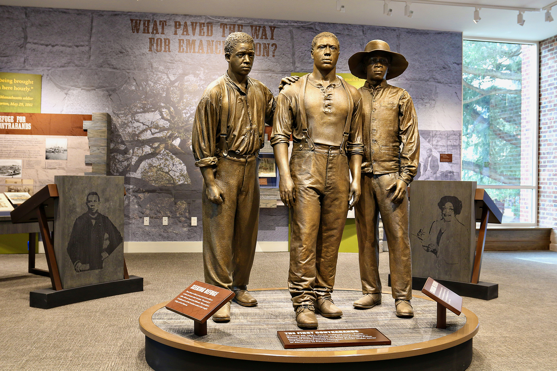 이 곳이 남부 버지니아에 속하니까, 남북전쟁이 발발하자 여기 주둔하던 연방군은 적군에 포위된 상태가 되었다. 하지만 남군은 감히 이 철통방어의 요새를 공격할 엄두를 내지 못했고, 북군은 우수한 해군력의 지원을 받아 이 요새를 거점으로 노퍽 등에서 전투를 치를 수 있었다고 한다. 그리고 이 곳이 '자유의 요새(Freedom's Fortress)'라는 별명을 얻은 이유는 따로 있는데, 아래 비지터센터의 내부 사진을 한 장 가져와서 보여드리며 설명한다.